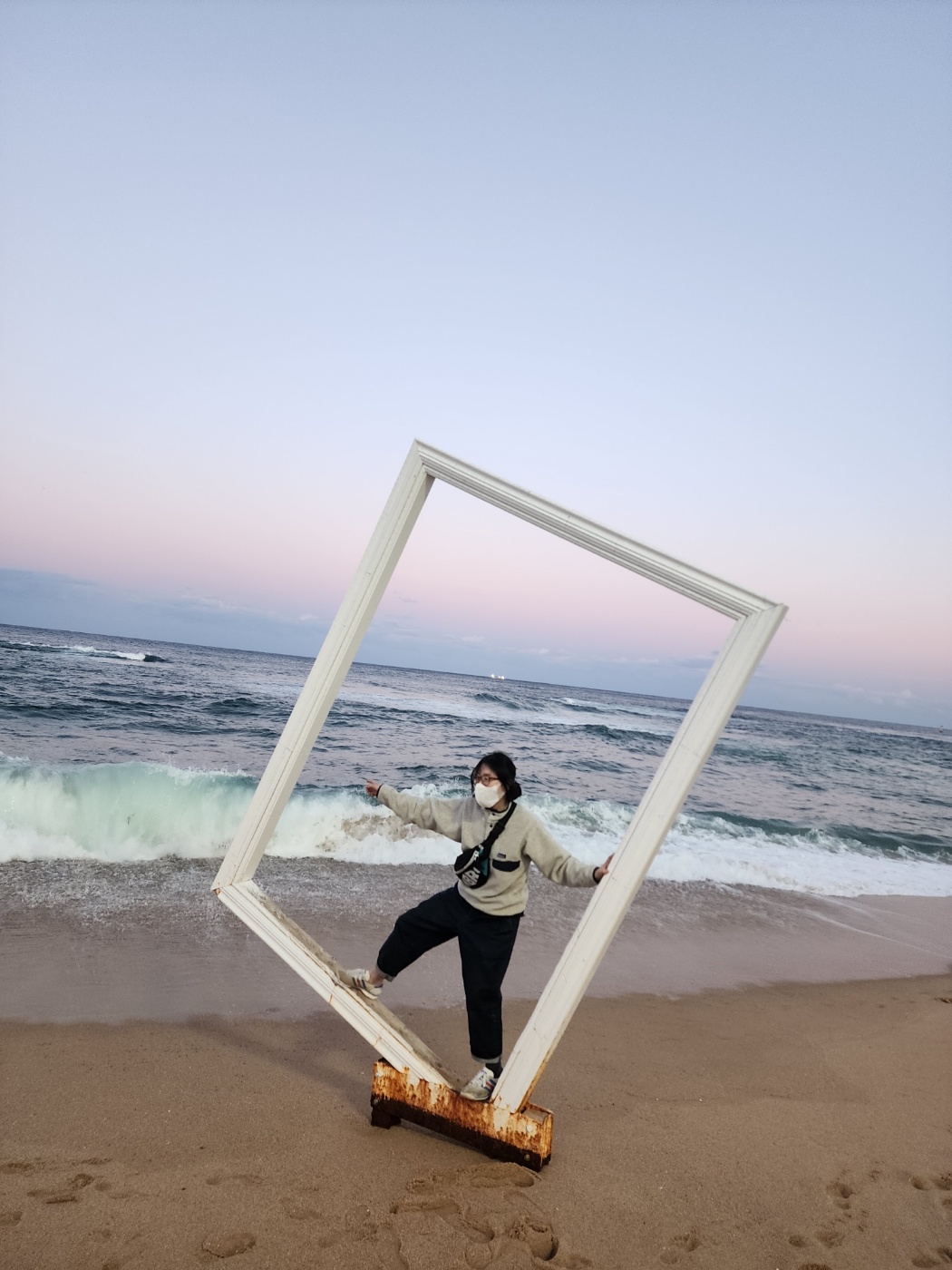 해변에는 이렇게 창문 모양의 사진 찍을 장소가있는데, 바람이 심한 날에는 여기까지 파도가 쳐서 정말 잘 올라가야 해요. 운이 없으면 신발이 젖을 수 있습니다.