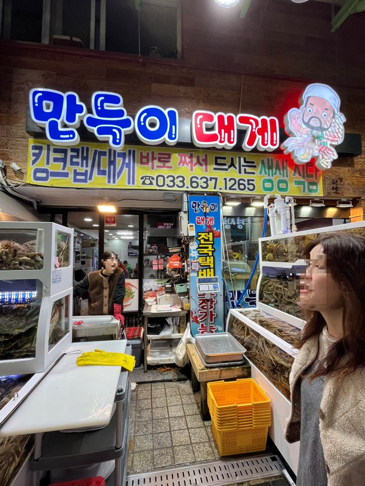 처음 저희가 음식을 구매한 곳은 막득이 대게라고, 위 사진에서 동문쪽 입구에서 조금만 들어가면 나오는 곳입니다. 사실 이곳 저곳 살펴보려고 했는데, 워낙 평이 좋고, 사장님의 호객행위에 순식간에 당해서, 바로 구매해 버렸어요ㅋㅋㅋ