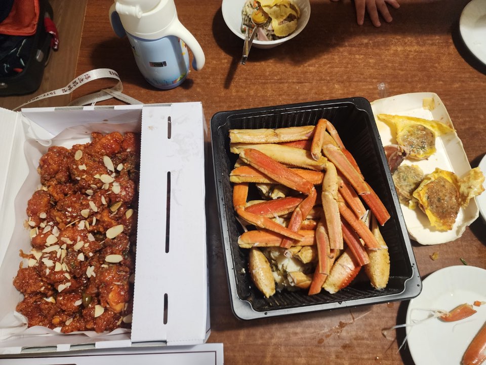 그렇게 룰루랄라 만석 닭강정을 포장하고, 대게 찜을 픽업하고, 아바이 순대를 가는 길에 하나 사서 숙소에서 정말 맛있게 먹었습니다. 만석 닭강정은 느끼하지 않은 처가집 양념치킨 맛이었고, 대게찜은 그냥 천국의 맛이었습니다. 아바이 순대는 이름만 들었지 처음 먹었는데, 왜 유명한지 알정도로 담백하고, 고소한 맛이었습니다.