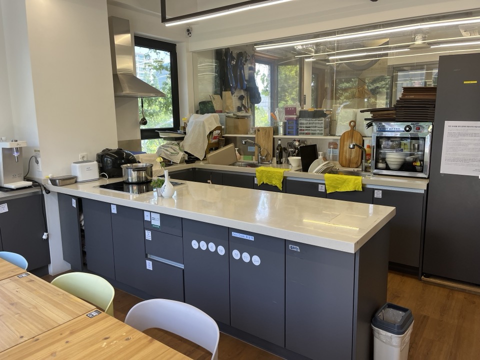 그리고 3층에는 공유주방이 있는데 평일 점심에 이곳에서 저렴한 가격에 함께 점심을 먹을 수 있다고 되어 있었는데 그 걸 못 해서 아쉽네요..ㅠㅠㅠ