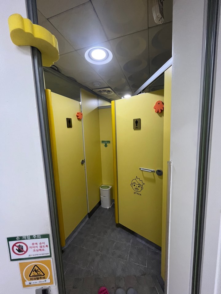 "꿈자람 공동육아방 답십리점"의 화장실은 어른과 아이가 모두 이용할 수 있는 곳이었어요.