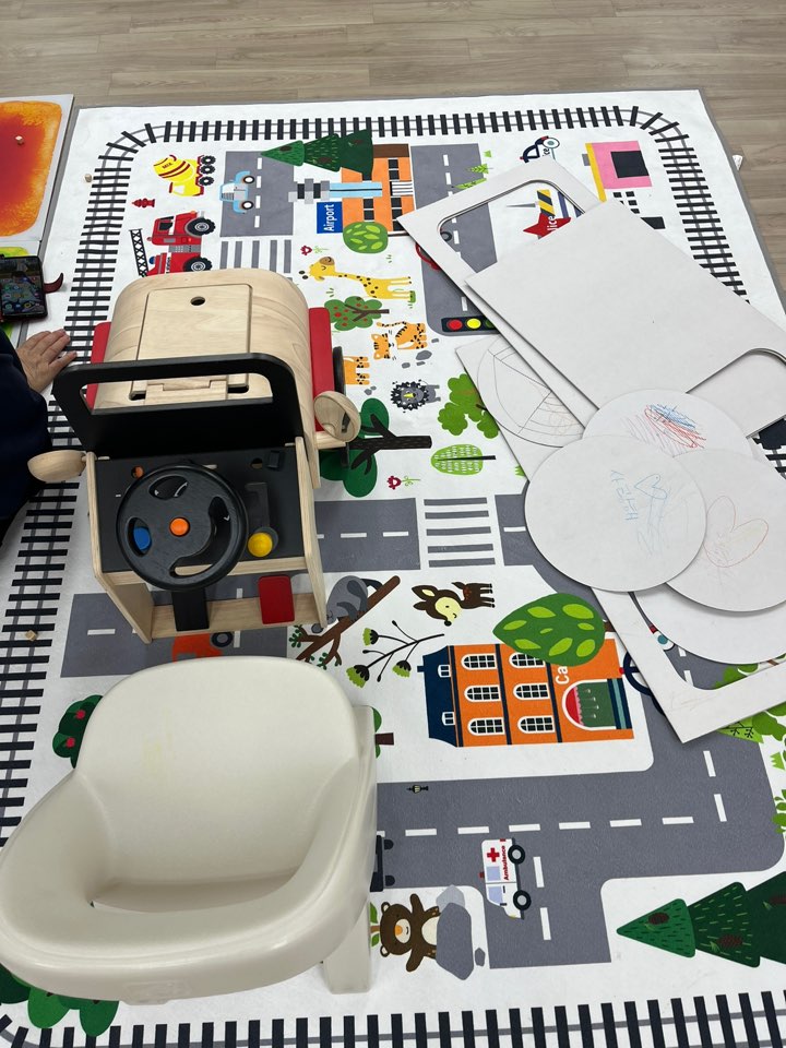 그리고 다른 지점과 동일하게 물감 번지는 발판과 도로 매트 등이 있어서 자동차 좋아하는 아이들에게 천국이었습니다.^^