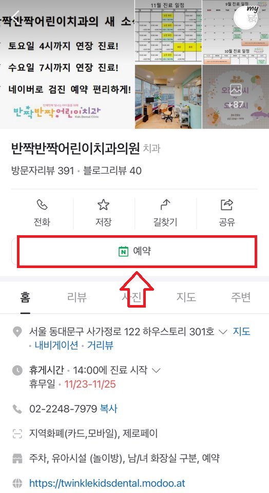 1. "반짝반짝 어린이 치과의원" 위치 및 진료 예약 방법과 진료 시간 (feat. 11월 진료 일정)
