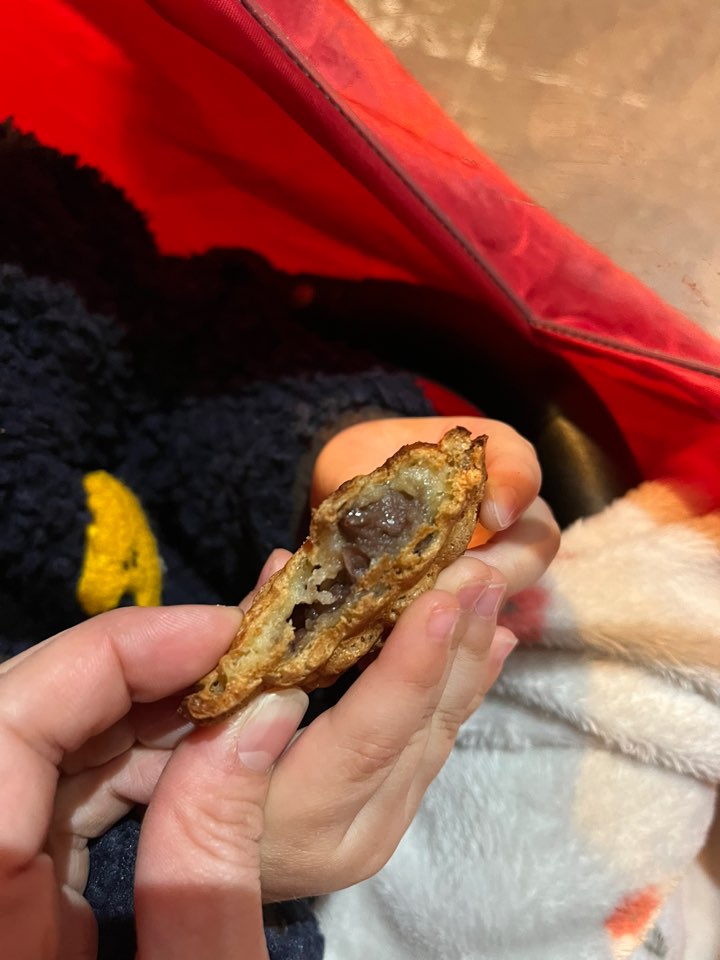 하삐가 팥 붕어빵 맛있다면서 한 개를 다 먹었어요^^