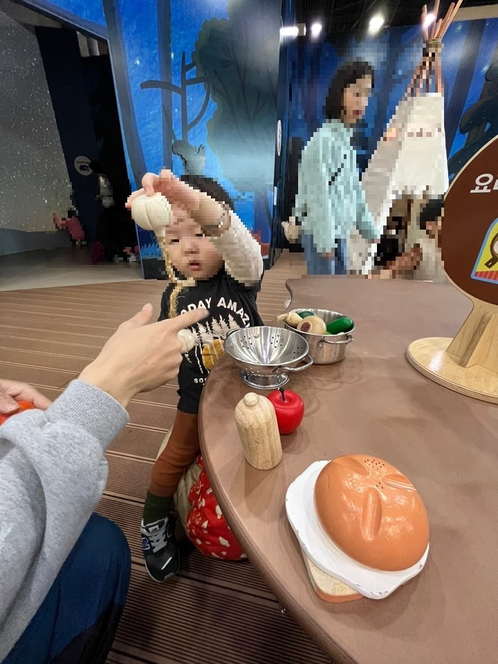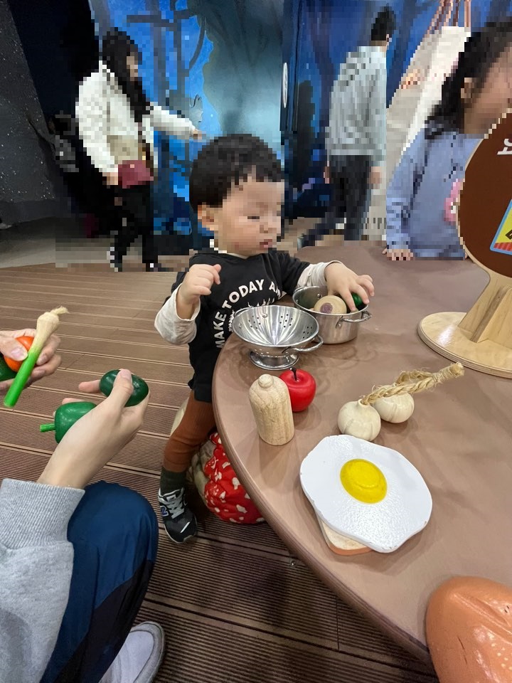 이곳에는 요리 재료들이 박스에 담겨 있어서 요리 재료들로 재미있게 소꿉놀이를 해 볼 수 있었습니다.