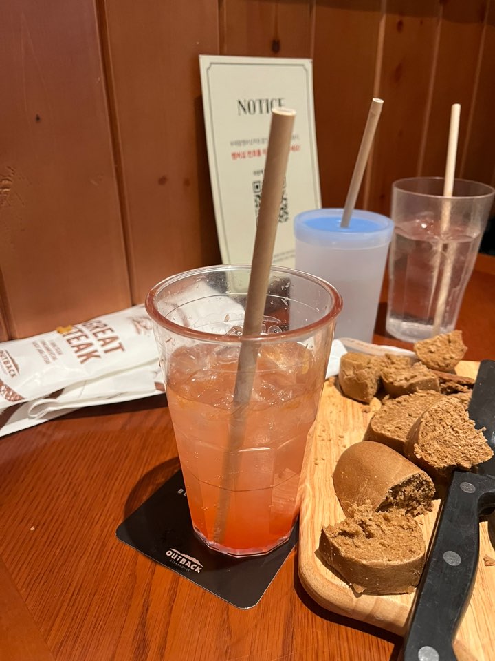 그리고 "아웃백 스테이크 하우스"에 오면 아기 물컵이 따로 있어 이 부분이 너무 좋더라고요~