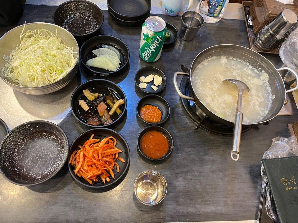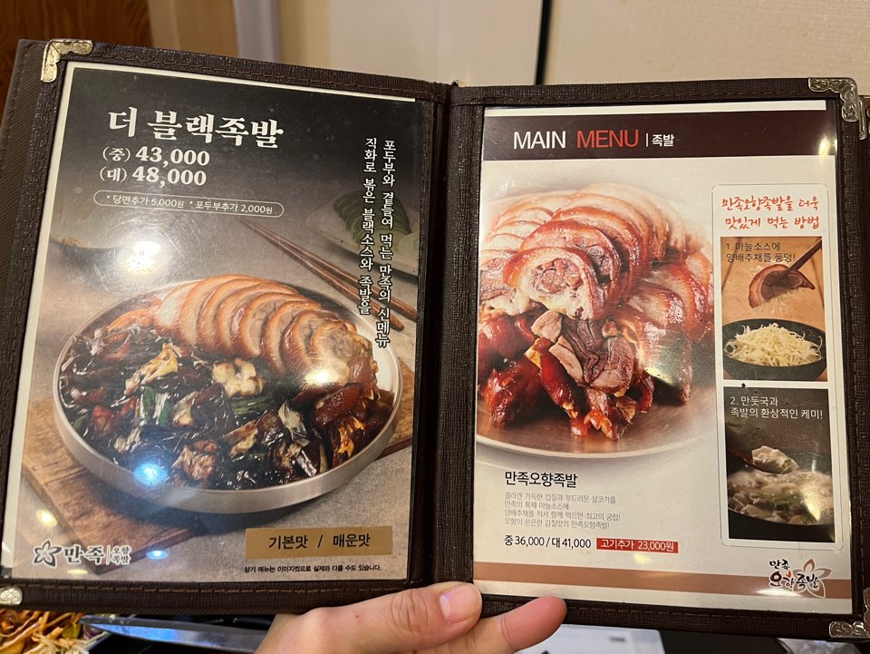 저희는 세트 메뉴에서 아기가 먹을만한 족 Set 를 시켜 먹었습니다. 그냥 족발 중자를 시키는 것보다(36,000원) 족발 중자, 미니쟁반국수와 음료수(+무한 리필 만두국)가 나와도 44,000원이니 이득이라서요.아기는 블랙 족발이나, 매운 것을 시키면 안 될 것 같아서 그냥 족발로 시켰습니다. 혹시나 족발을 안 먹을 때는 만두국에 밥을 말아서 주면 되는 장점이 있었습니다.