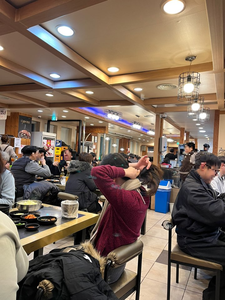 결론부터 말하면 있습니다! 누가 이 복잡한 식당에 아기를 데려올까, 과연 아기의자가 있을까 반신반의 했지만, 네! 있습니다! 자리는 비록 좁긴 했지만, 다행이 점원분들이 구석 자리에 저희를 안내해 주셔서, 그나마 아이와 여유있게 식사를 할 수 있었고, 너무나 씨끄러운 분위기에 하삐가 떠드는 소리가 묻힐 수 있어서 좋았습니다. 다만 겨울에 오시면 그렇게 따뜻하지는 않아 아이가 추울 수 있으니 조금 따뜻하게 옷을 입혀서 먹는 것이 좋을 것 같습니다.