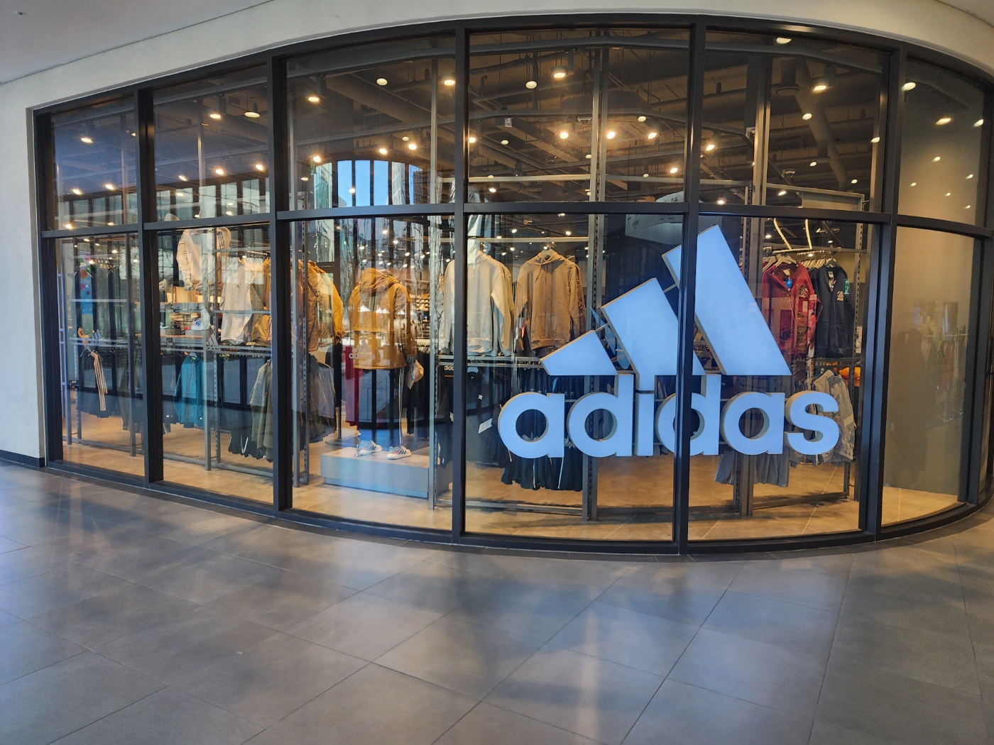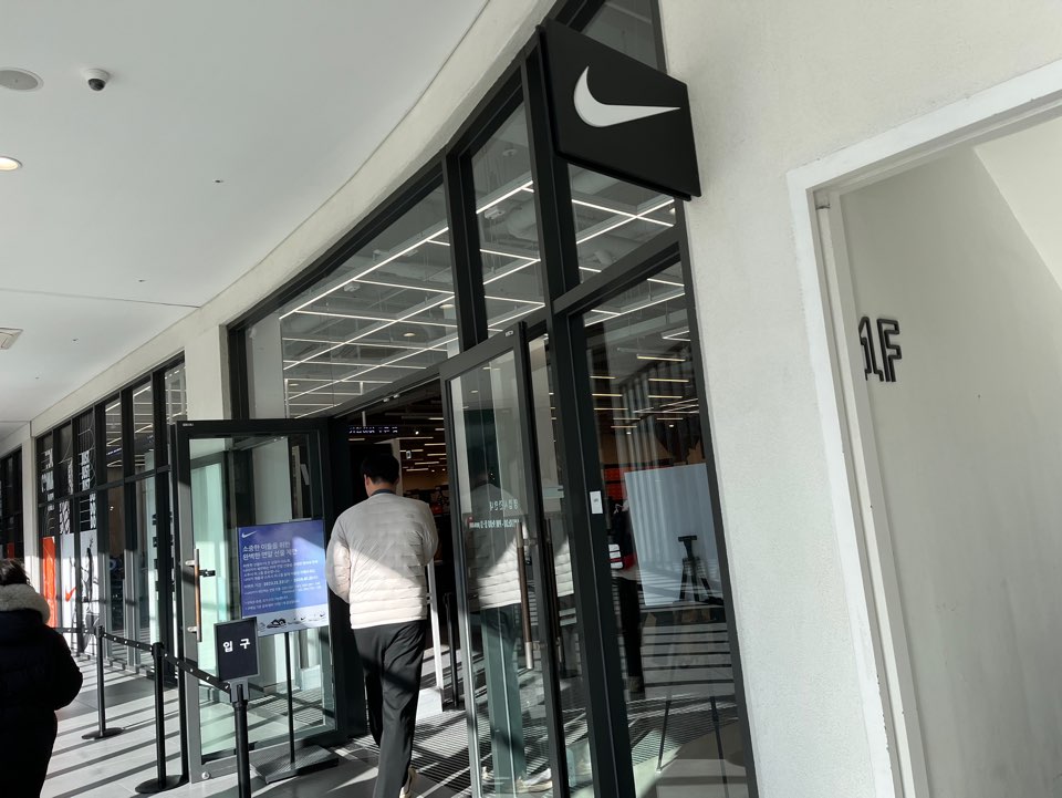 나이키 매장은 푸드 코트 근처에 위치해 있고, 아디다스는 나이키 매장 바로 옆에 위치해 있습니다.