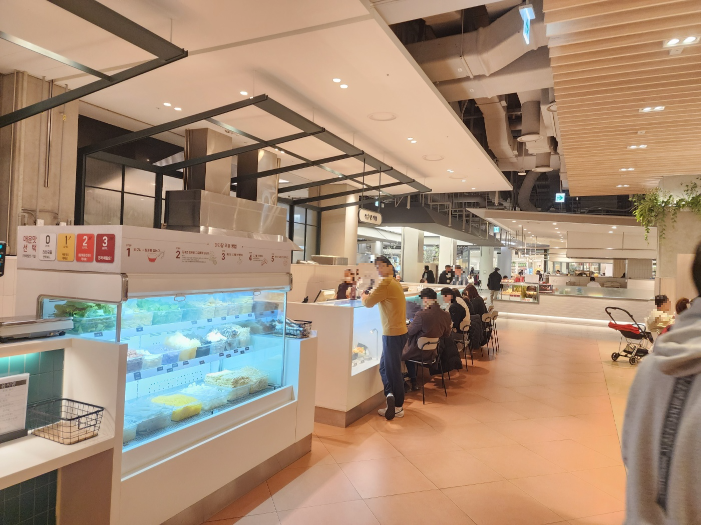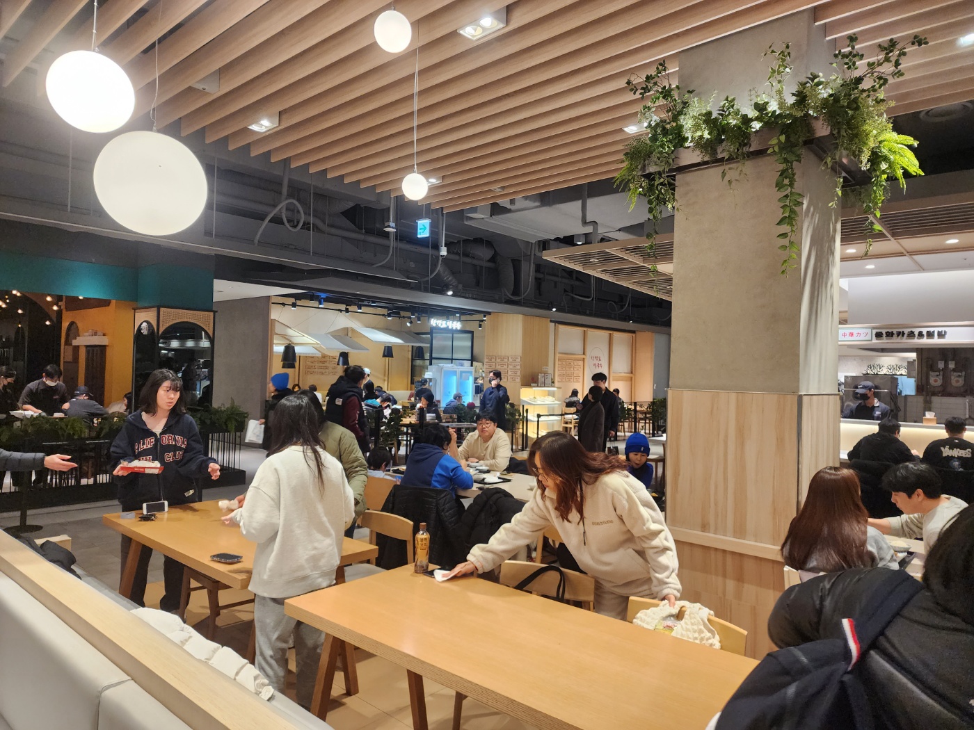 푸드 코트라는 이름과는 다르게 공용으로 앉을 수 있는 식탁이 많지 않고 모두 각각의 식당 내부에서만 먹을 수 있는 자리만 많았습니다. 그래서 음식들을 다양하게 먹기가 힘들었습니다.