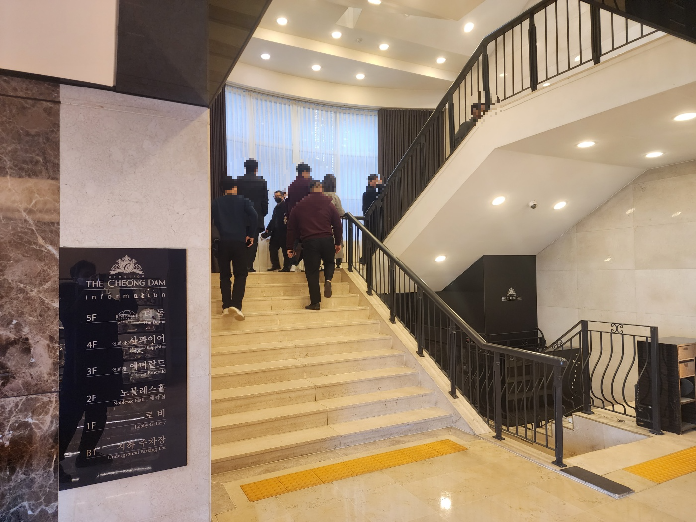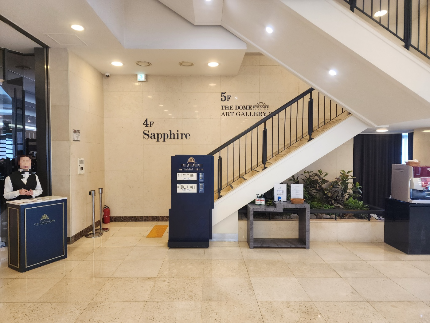 총 5층까지 있고, 1,2층은 예식홀, 3,4층은 뷔페를 먹을 수 있는 연회장이 위치해 있습니다. 각 연회장은 에머랄드, 사파이어라는 보석이름으로 이름이 붙어 있었고, 5층은 별도 더 돔이라는 이름의 갤러리로 이용되고 있었습니다.