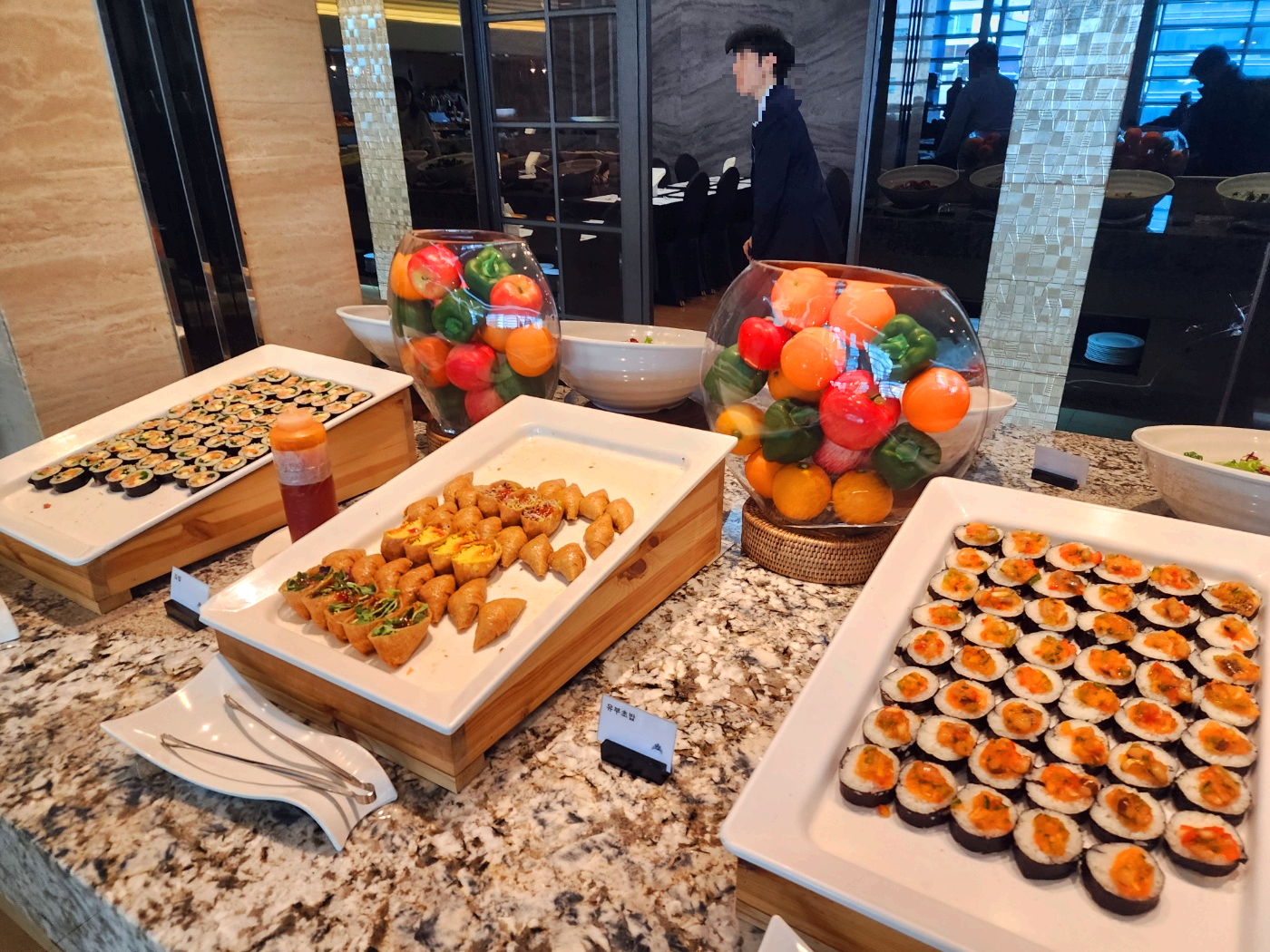 음식은 여러 종류가 있었는데 결론부터 말씀드리면 맛이 그렇게 뛰어나지는 않았습니다. 뷔페의 맛을 판단하는 기준은 주로 면요리인데요. 파스타나, 쌀국수 등을 먹어보고 면이 잘 익었는지 면에 소스가 잘 스며들었는지 등을 보면 이 뷔페가 맛있는 뷔페인지 판단하기 쉽더라구요.