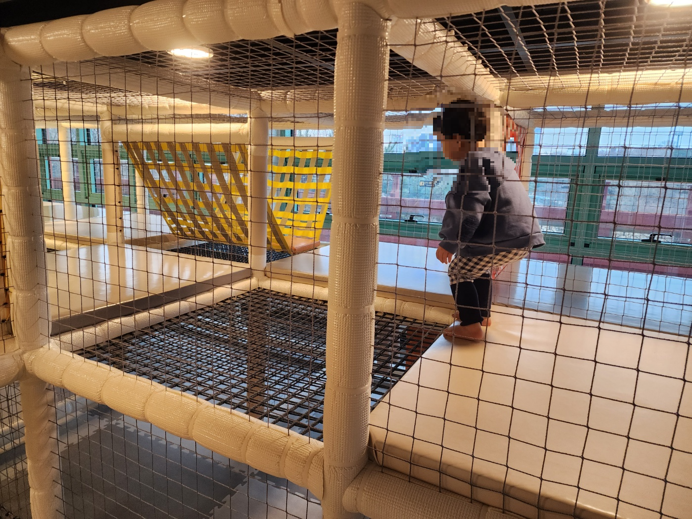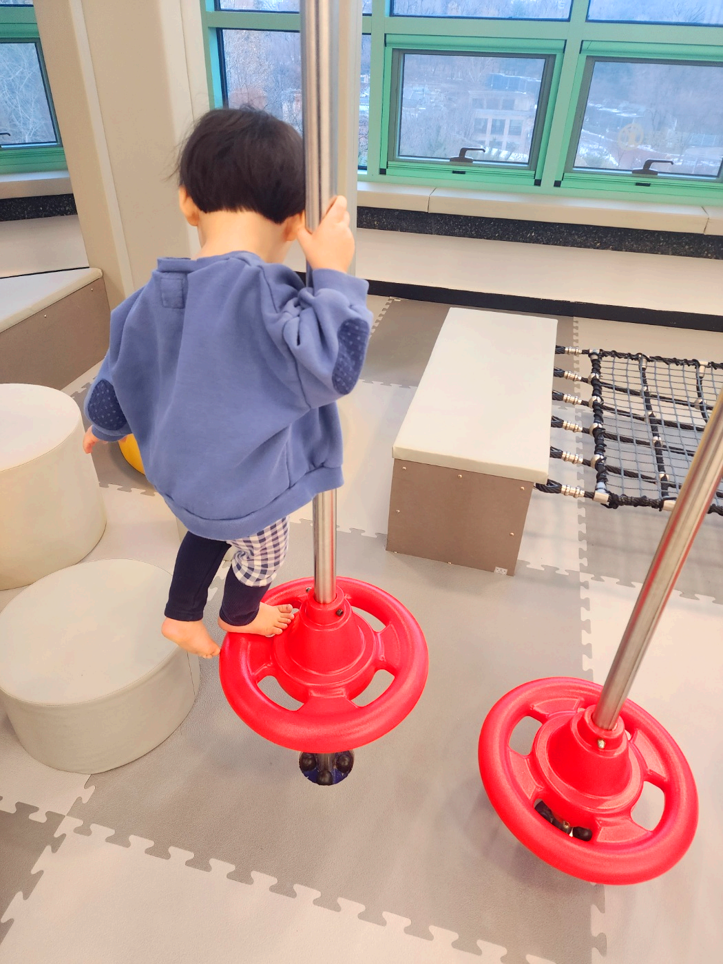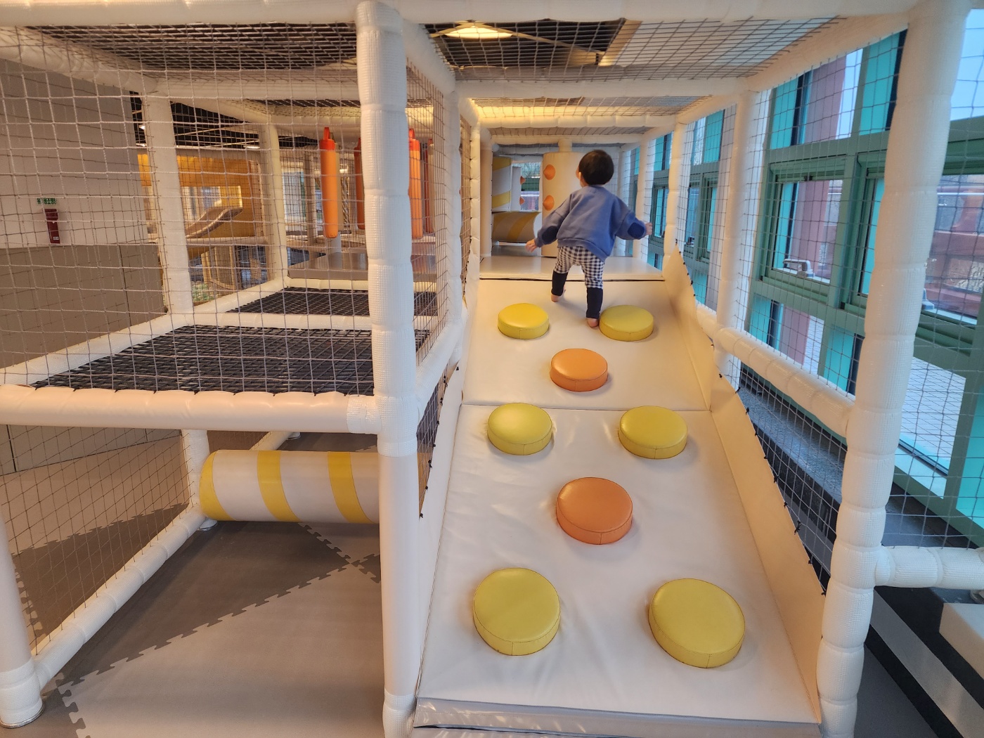 그리고 2층과 마찬가지로 중앙에 장애물을 극복할 수 있는 놀이 시설을 중심으로 장난감들과 놀이시설이 분포돼 있습니다. 2층과는 다르게 조금 더 큼직 큼직하고 난이도가 있는 놀이 시설들이 준비 돼 있습니다.