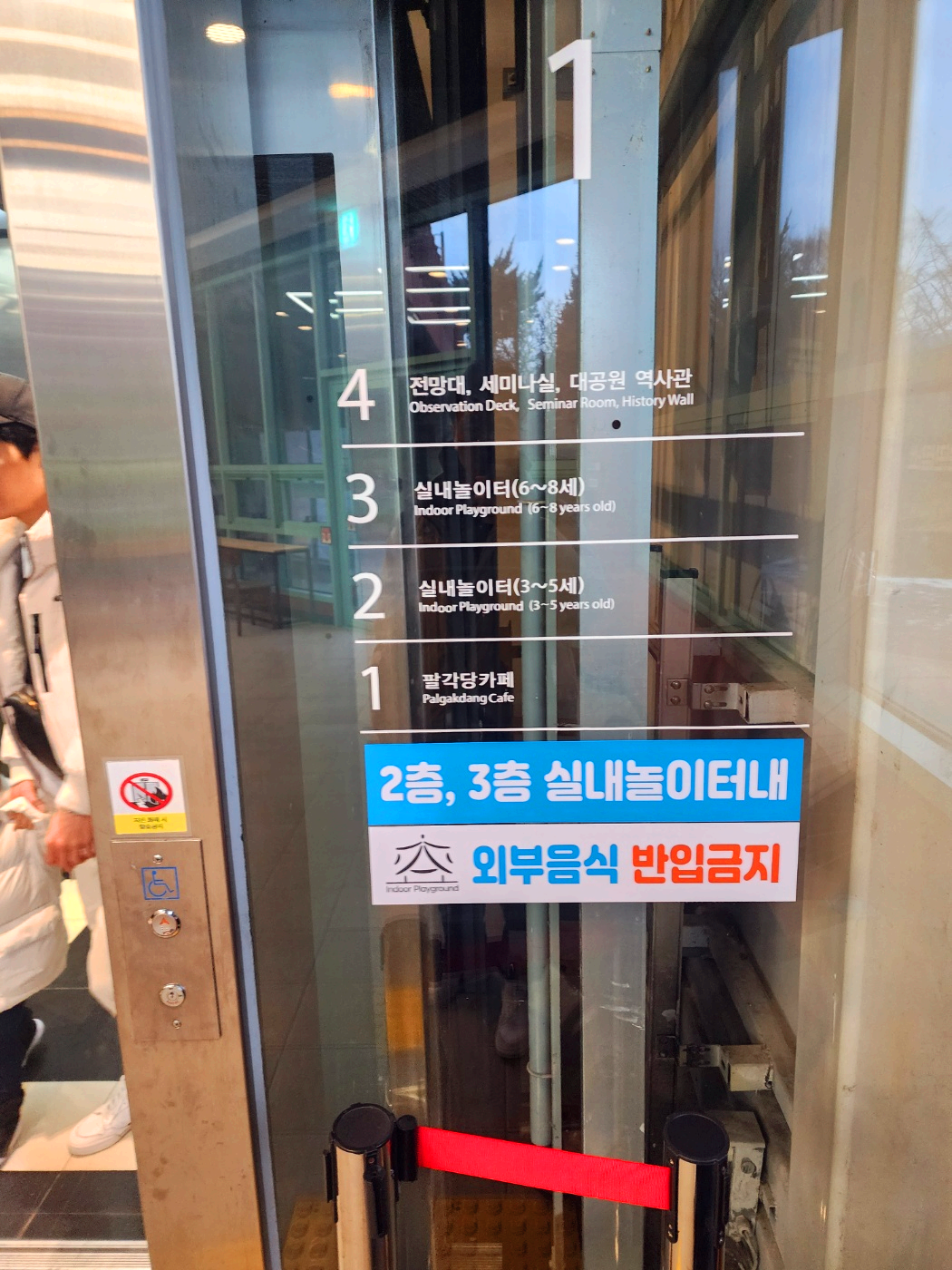 우선 음식은 외부 음식 반입 금지입니다. 1층 팔각당 카페에서 엘레베이터나 계단을 이용하여 올라오실 수 있습니다. 우선 2층에서 신발과 물건을 보관함에 놓고 입장합니다.
