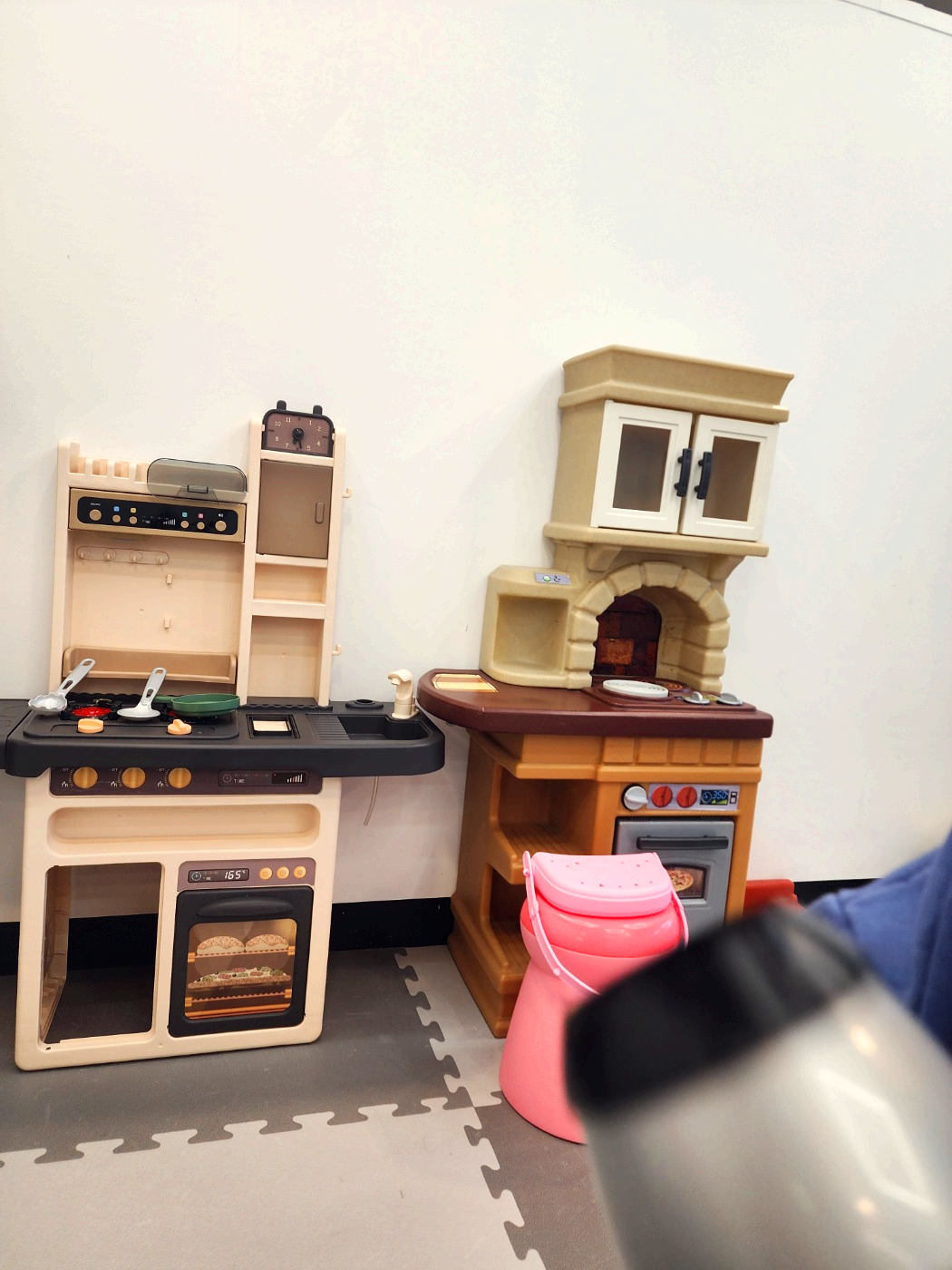 주방 놀이 기구도 많지는 않지만 굉장히 비싸 보이는 세트가 준비 돼 있었습니다. 주전자를 전자레인지에 올려 놓으면 물 끓는 소리까지 나더라고요!