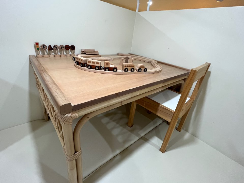 2층 놀이 공간에는 기차 놀이 공간, 소파, 목마, 원목 장난감 등이 있었어요.
