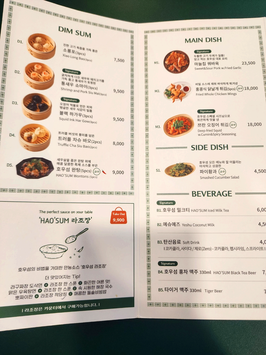라조장과 뽀짜이 간장, 딤섬간장과 앞접시가 세팅돼 있습니다. 라조장은 개별적으로 9,900원에 팔고 있었습니다.