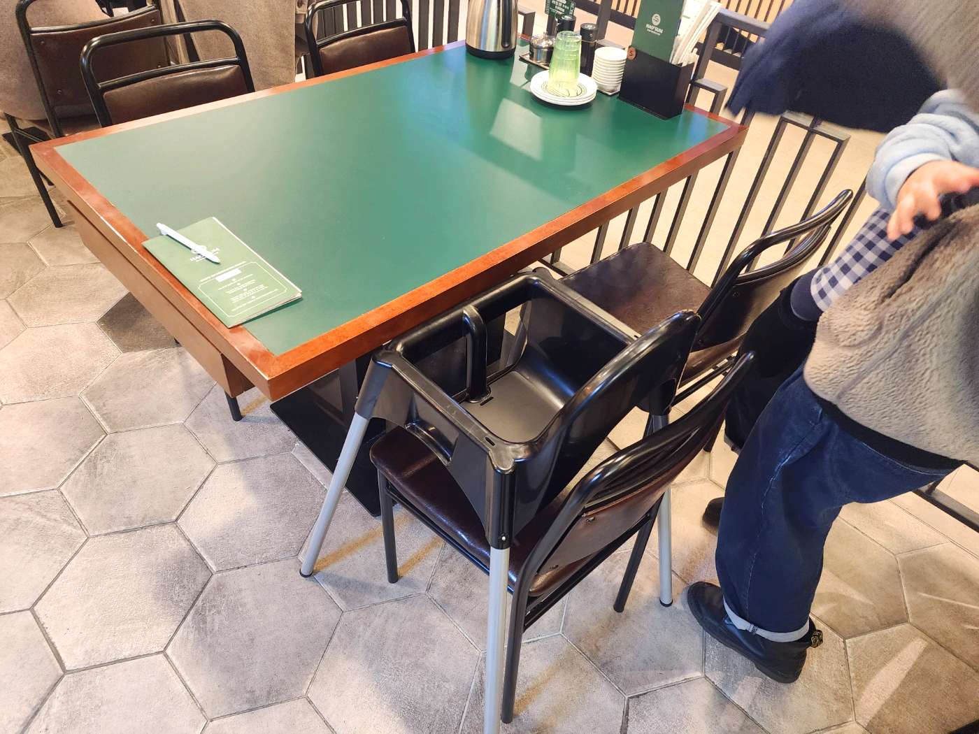 테이블 세팅은 아래와 같이 돼 있고, 아기 의자도 마련돼 있습니다.
