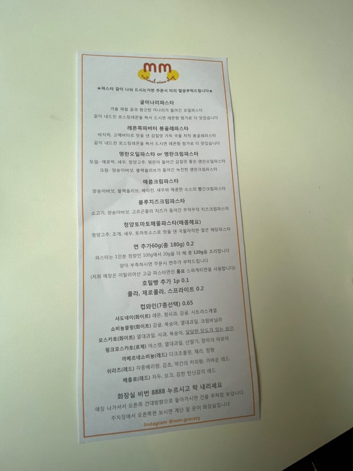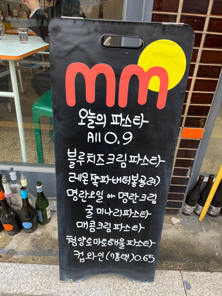 낮에는 런치 파스타를 판매하시고 저녁에는 와인과 어울리는 안주들을 판매하는 것 같았어요.