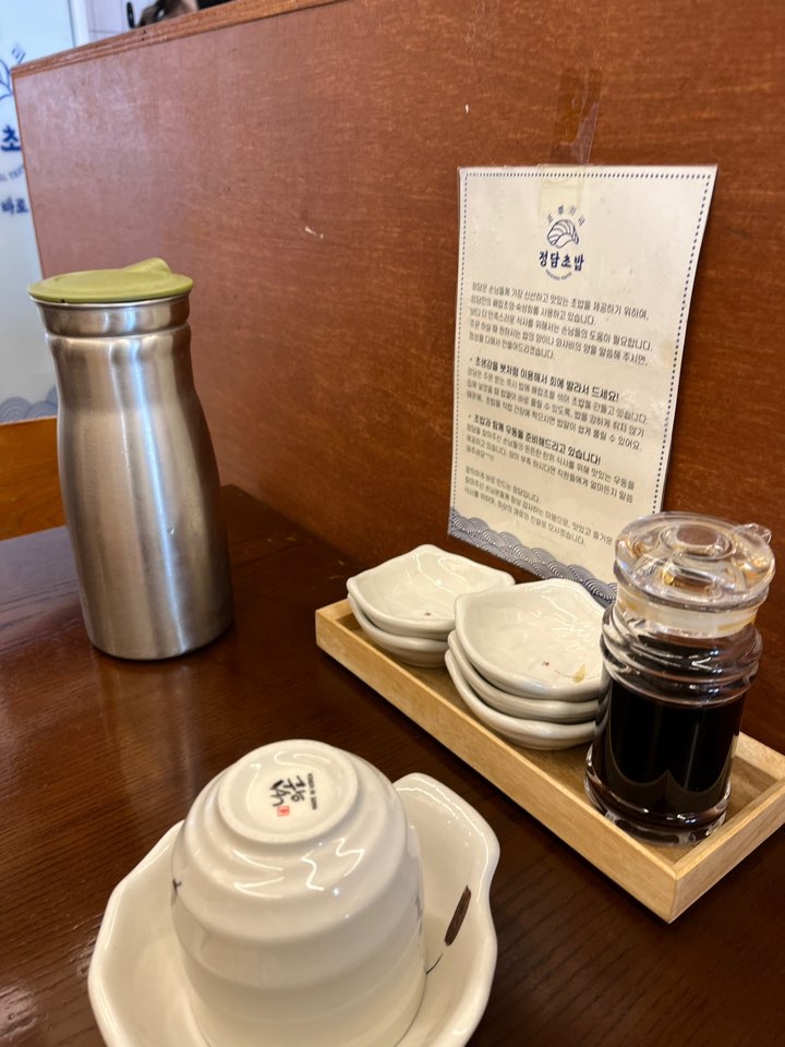 "정담초밥" 매장은 그리 크지 않았어요. 내부는 4인석 2개, 2인석 5개 정도 있는 아담한 규모였어요.