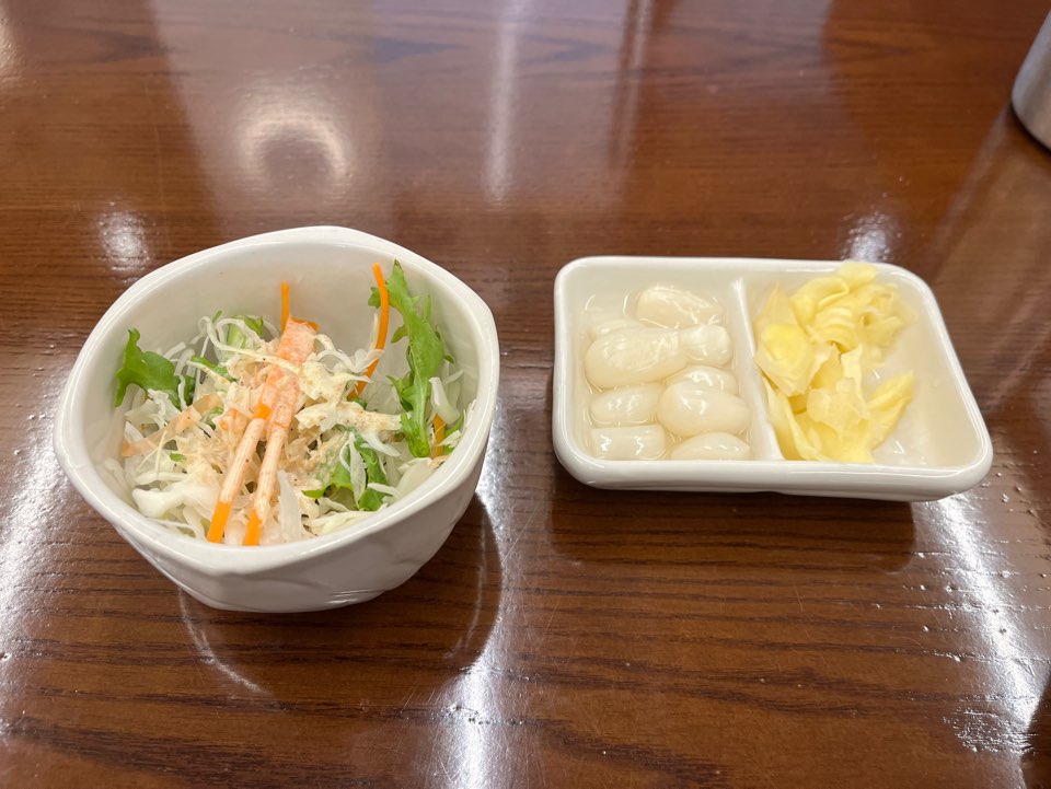 "정담초밥"은 기본 세팅으로 샐러드와 락교, 생강편이 나와요.