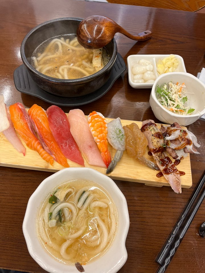 그리고 초밥을 시키면 서비스로 우동이 나오더라고요. 추운 날씨가 따뜻한 우동을 먹으니 몸이 따뜻해지고 좋았습니다.