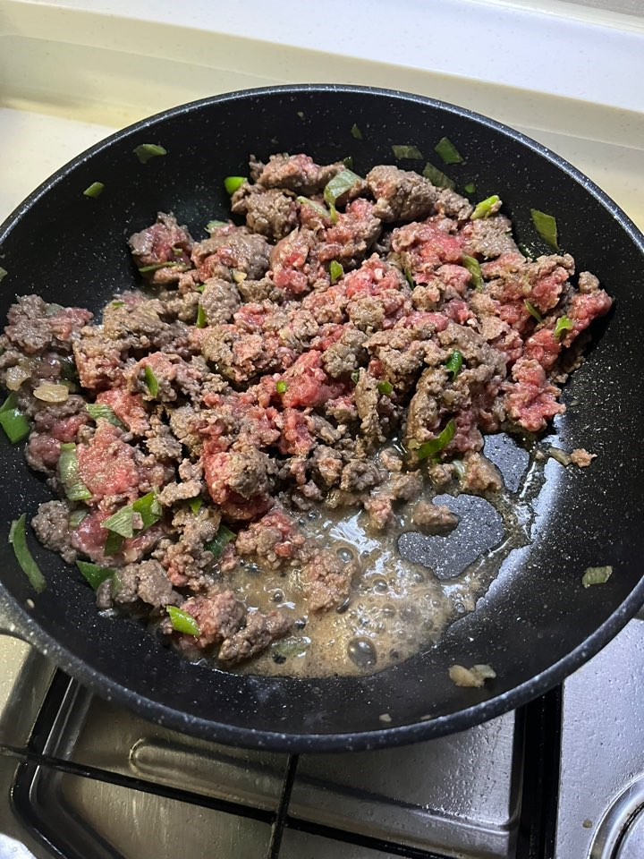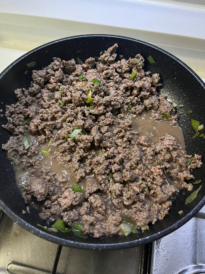 3) 채소와 소고기에서 물이 나오는데 이 물이 사라질 때까지 볶아 주세요!