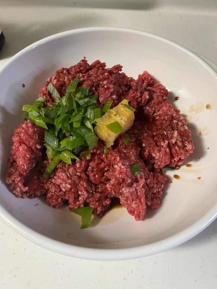 | 소고기 다짐육 약 400g, 매실청 1 스푼, 꿀 3스푼 간장 4스푼 (양조 간장 2스푼 &아기 간장 2스푼), 참기름 조금, 대파 2줄, 다진 마늘 1스푼 (한 스푼 = 어른 숟가락) |