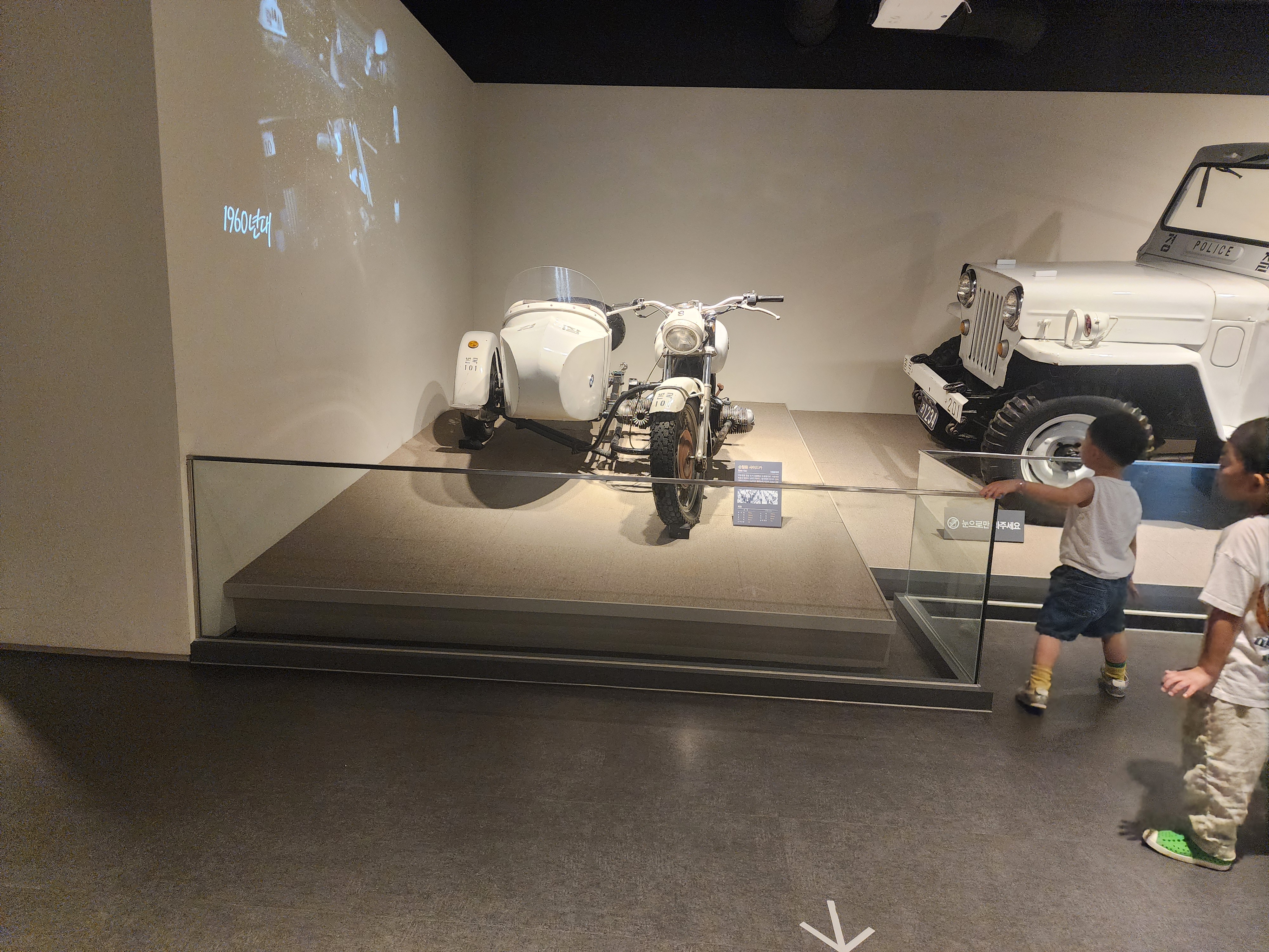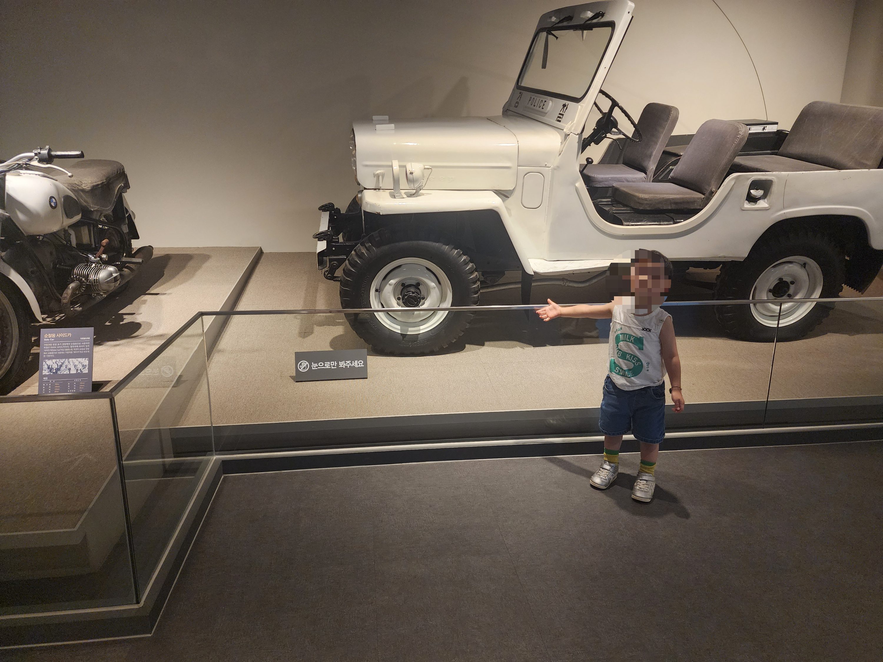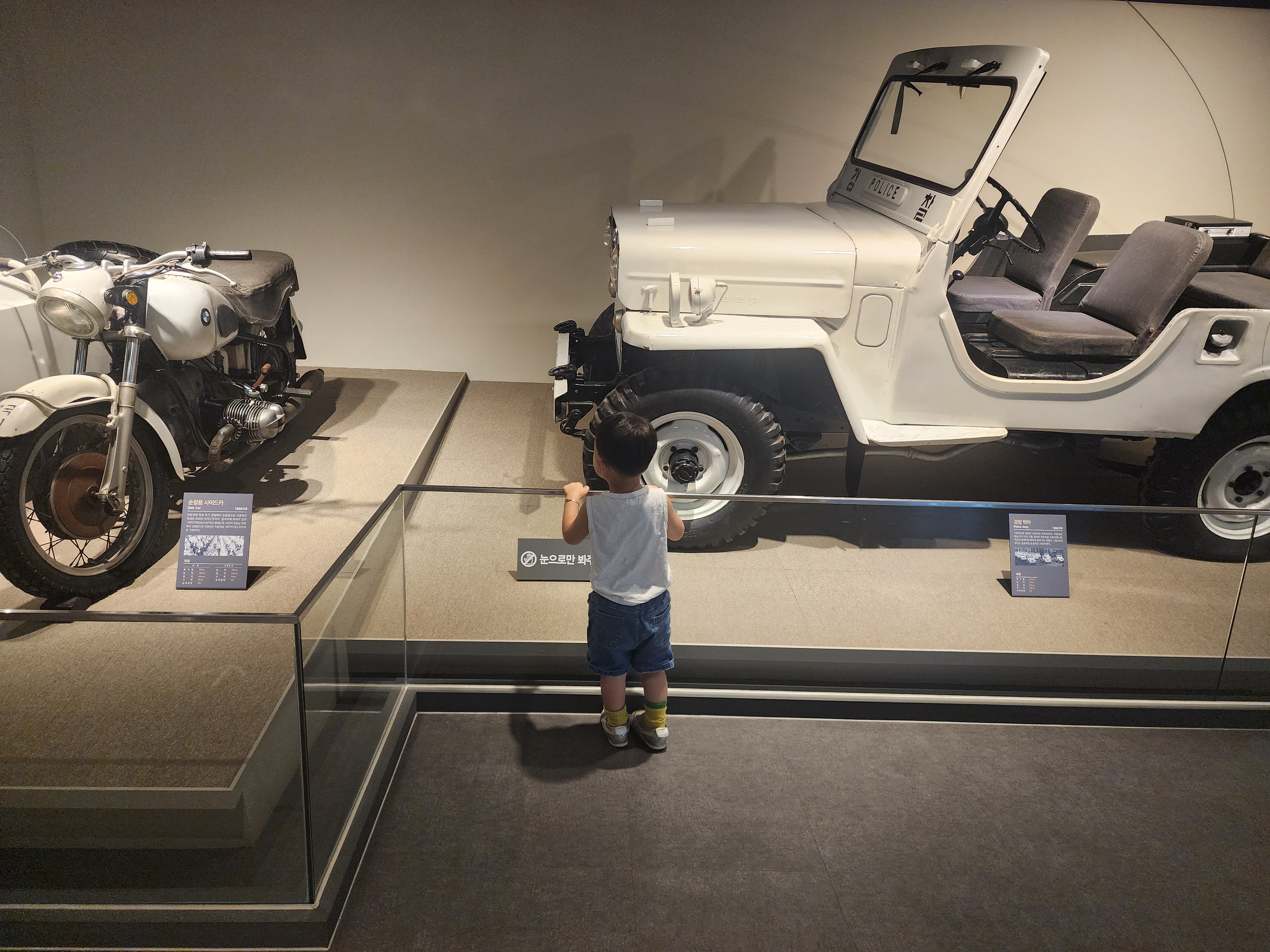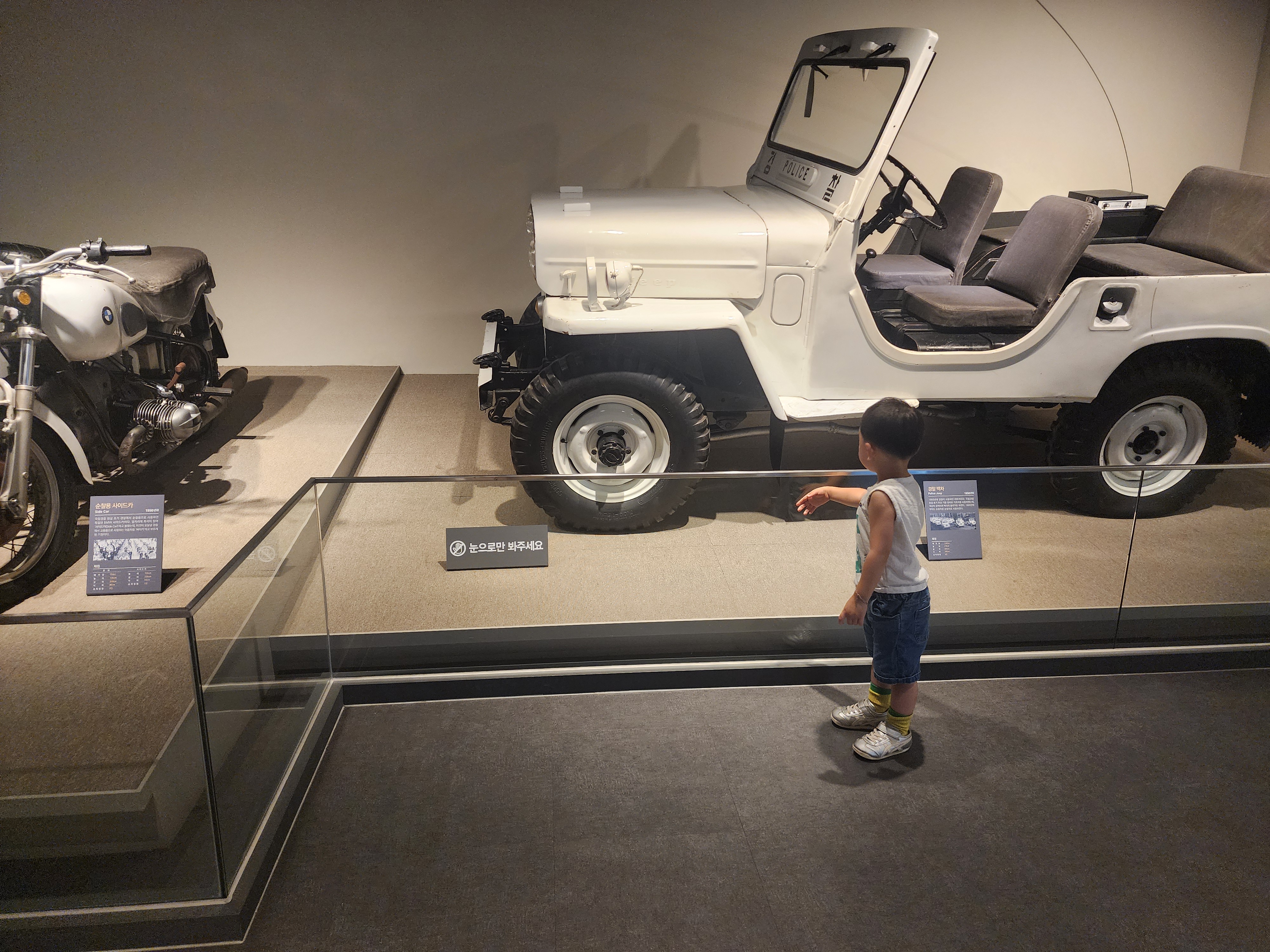 3층에 들어가면 이렇게 예전에 사용하던 멋진 하얀색 경찰차와 오토바이가 맞아 줍니다.