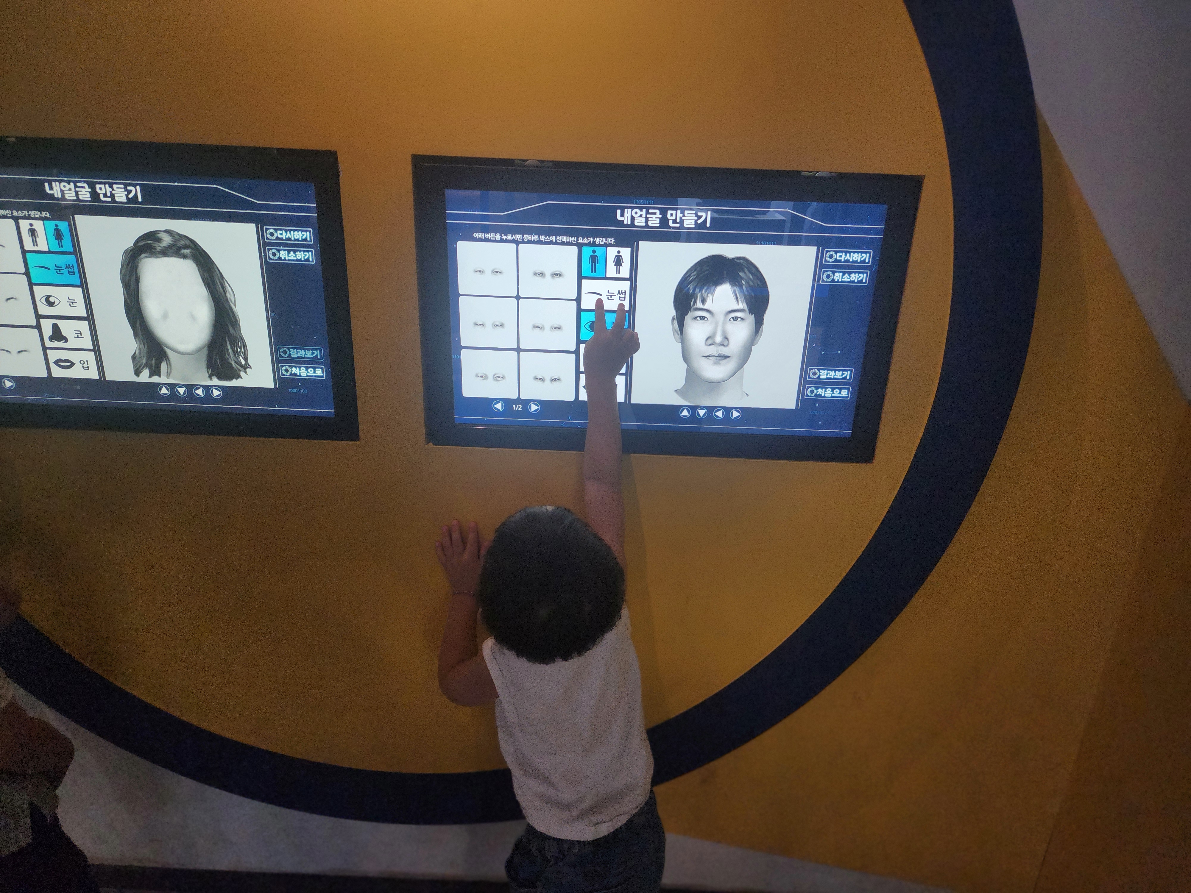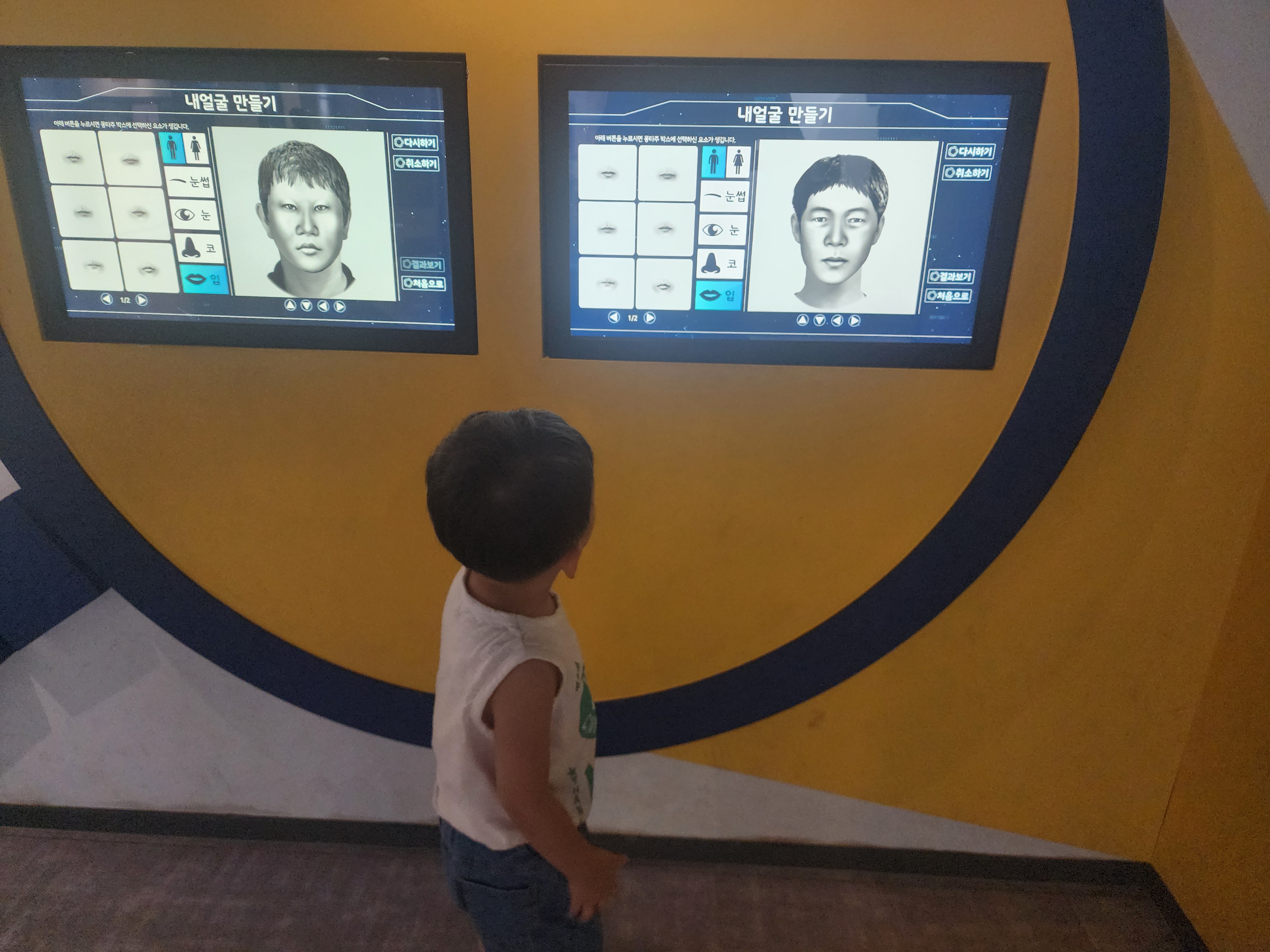 직접 범죄자의 몸타주를 만들어 볼 수도 있었어요. 하삐는 너무 하고 싶어했지만 아직 키가 작아서 제대로 즐기지 못 했네요.