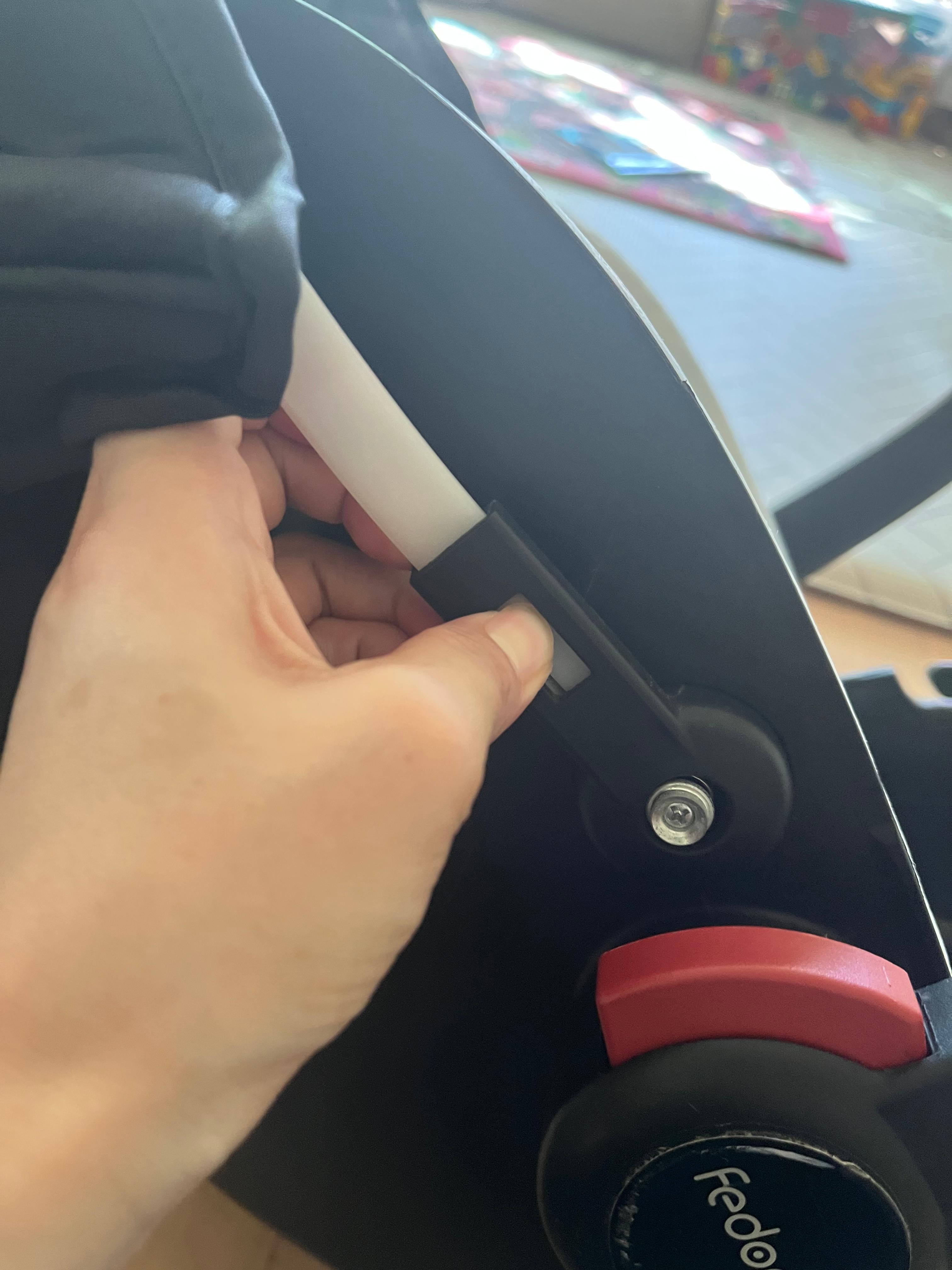 차양막은 왼쪽 옆 부분의 구멍 사이로 하얀색 튀어나온 부분을 누르면 빠지더라고요.
