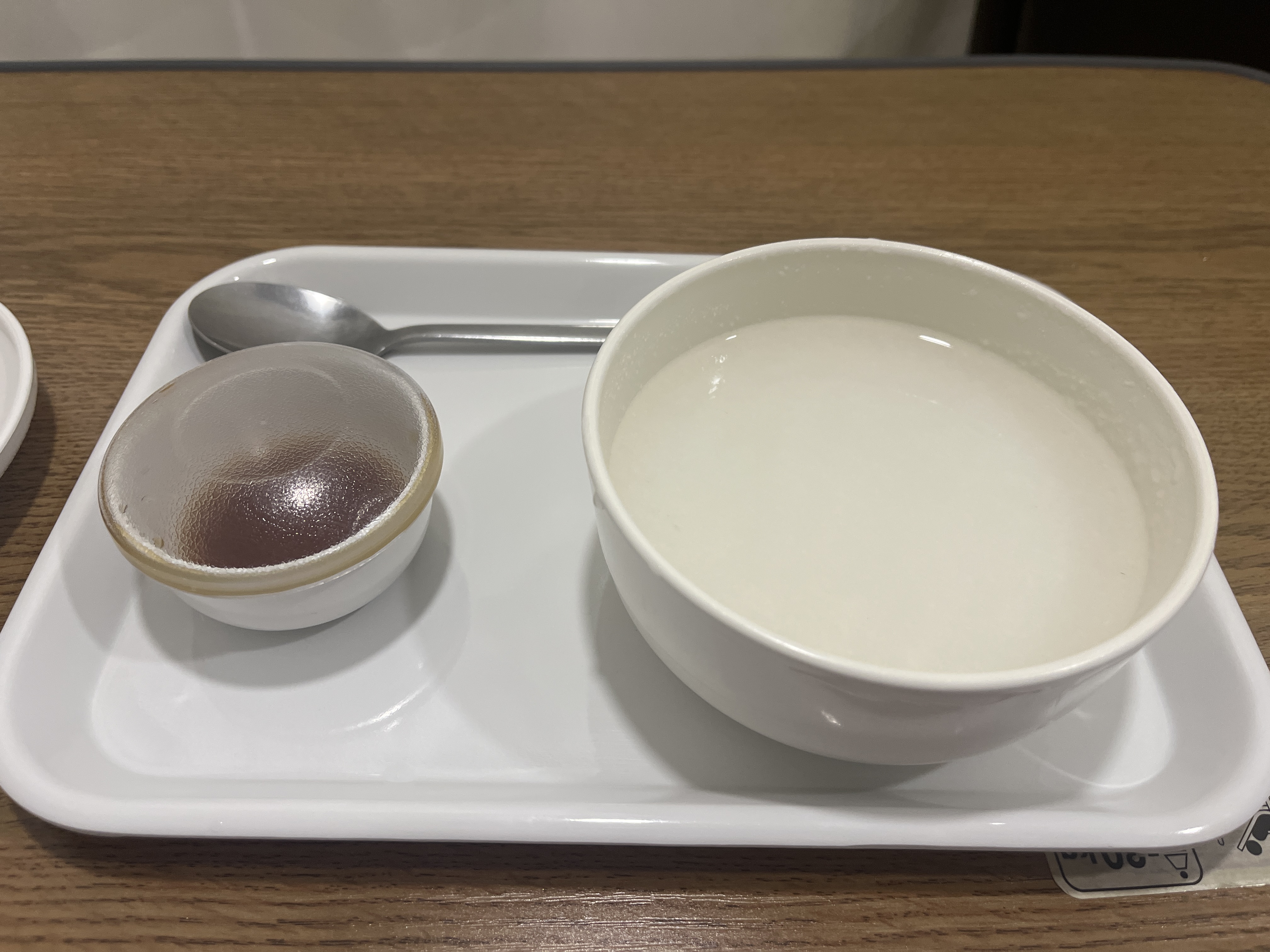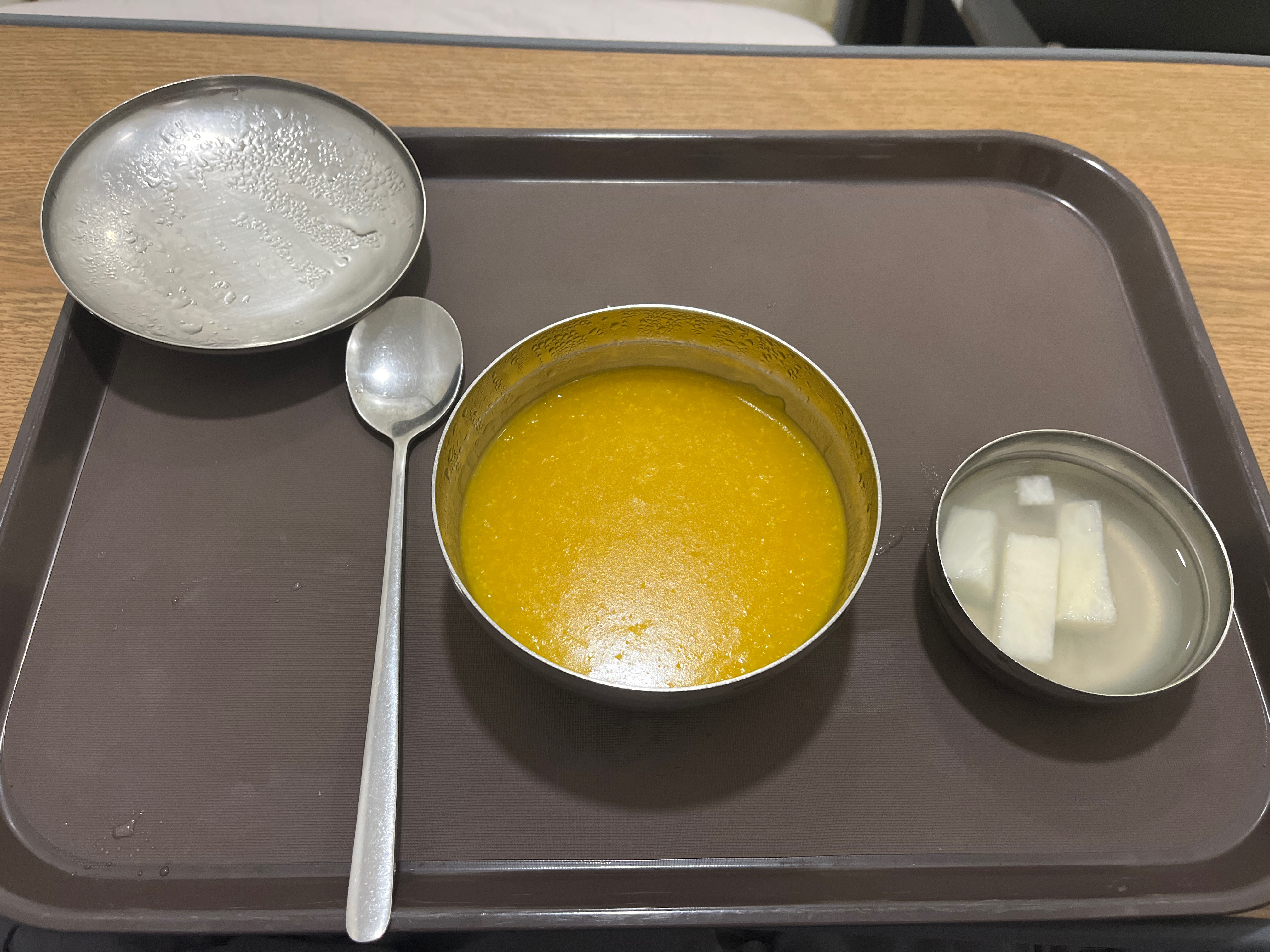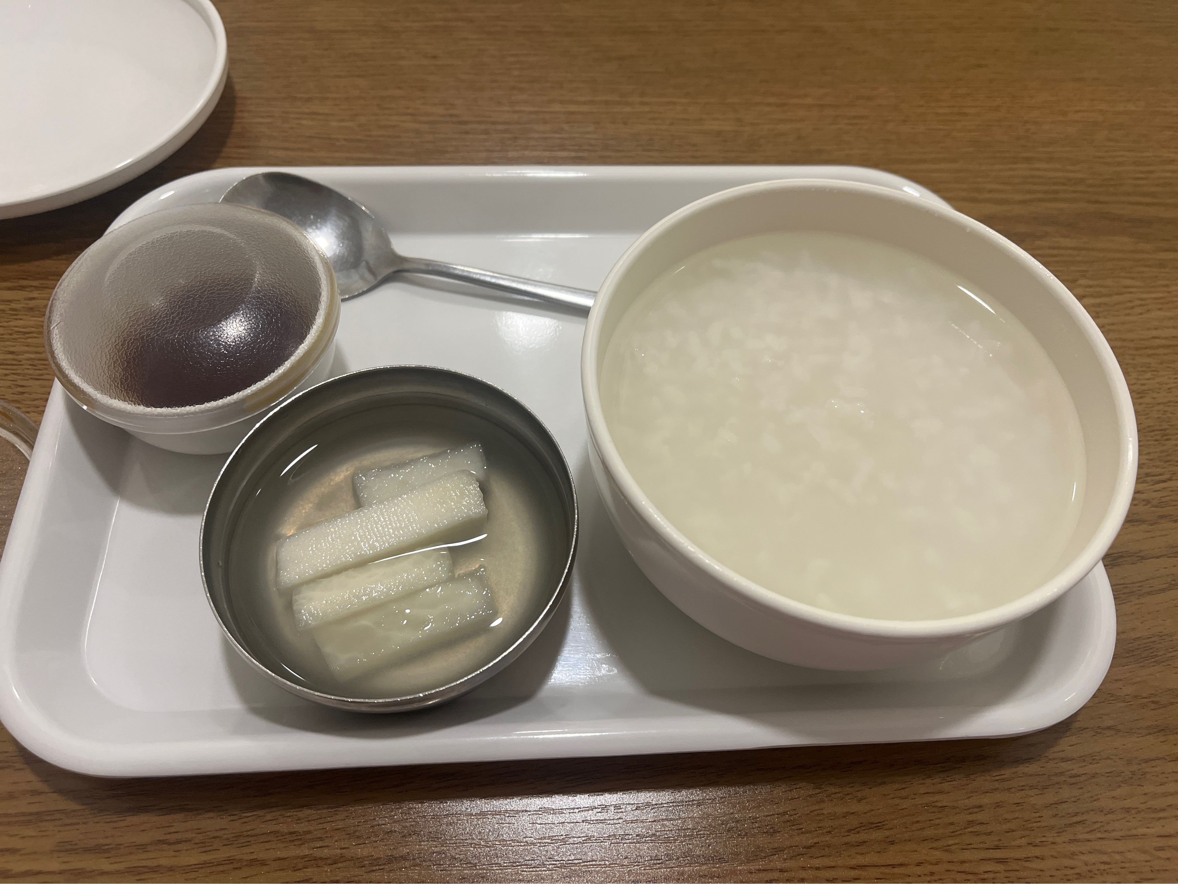 제왕 3일차 아침에 저는 쌀 죽을 먹었어요. 무김치도 나와서 밍밍한 쌀 죽을 맛있게 먹을 수 있었어요~