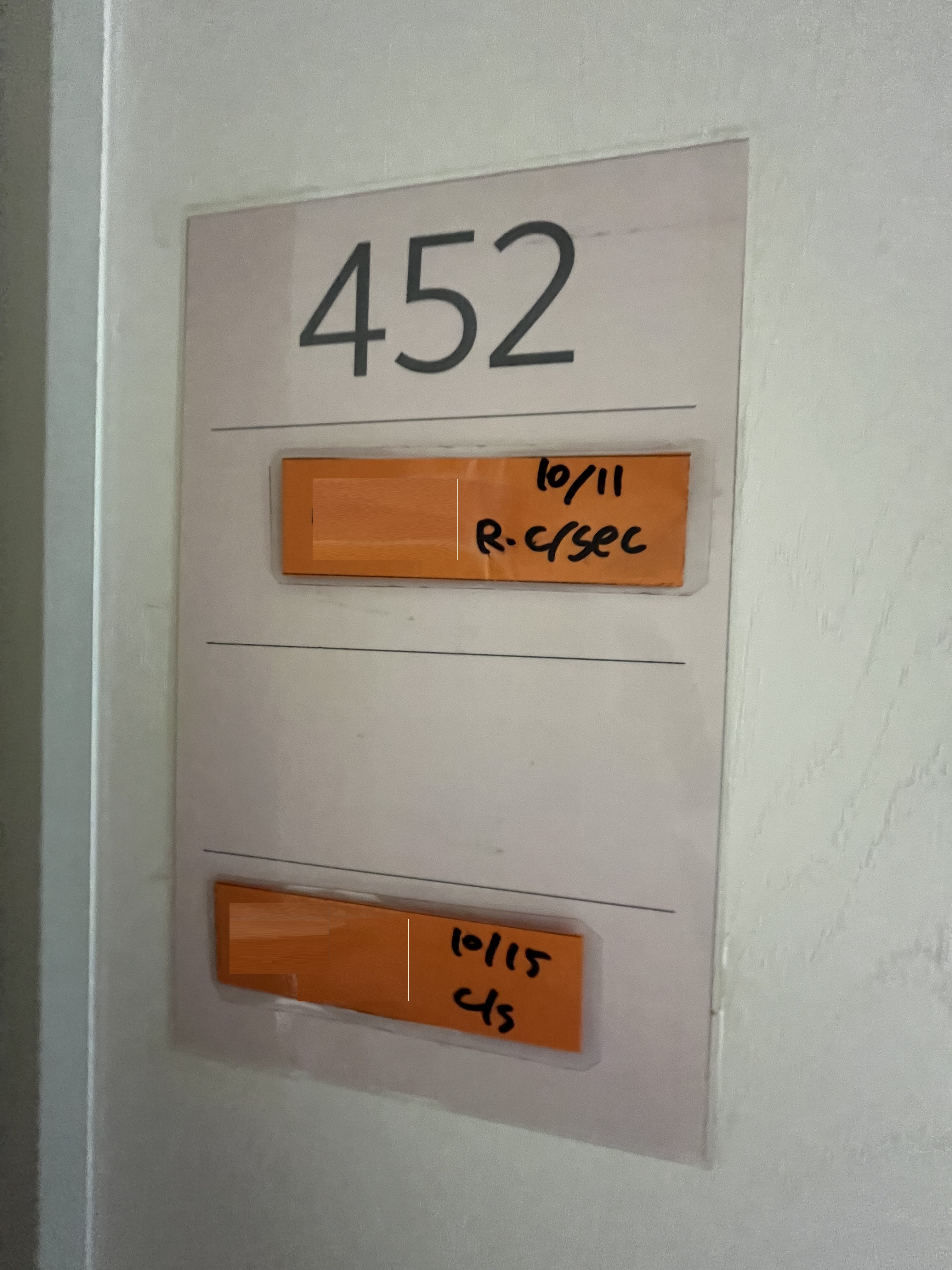 저는 452호에서 5박 6일 입원해 있었는데 3개의 병상 중 "452-A" 병상에 있었어요.