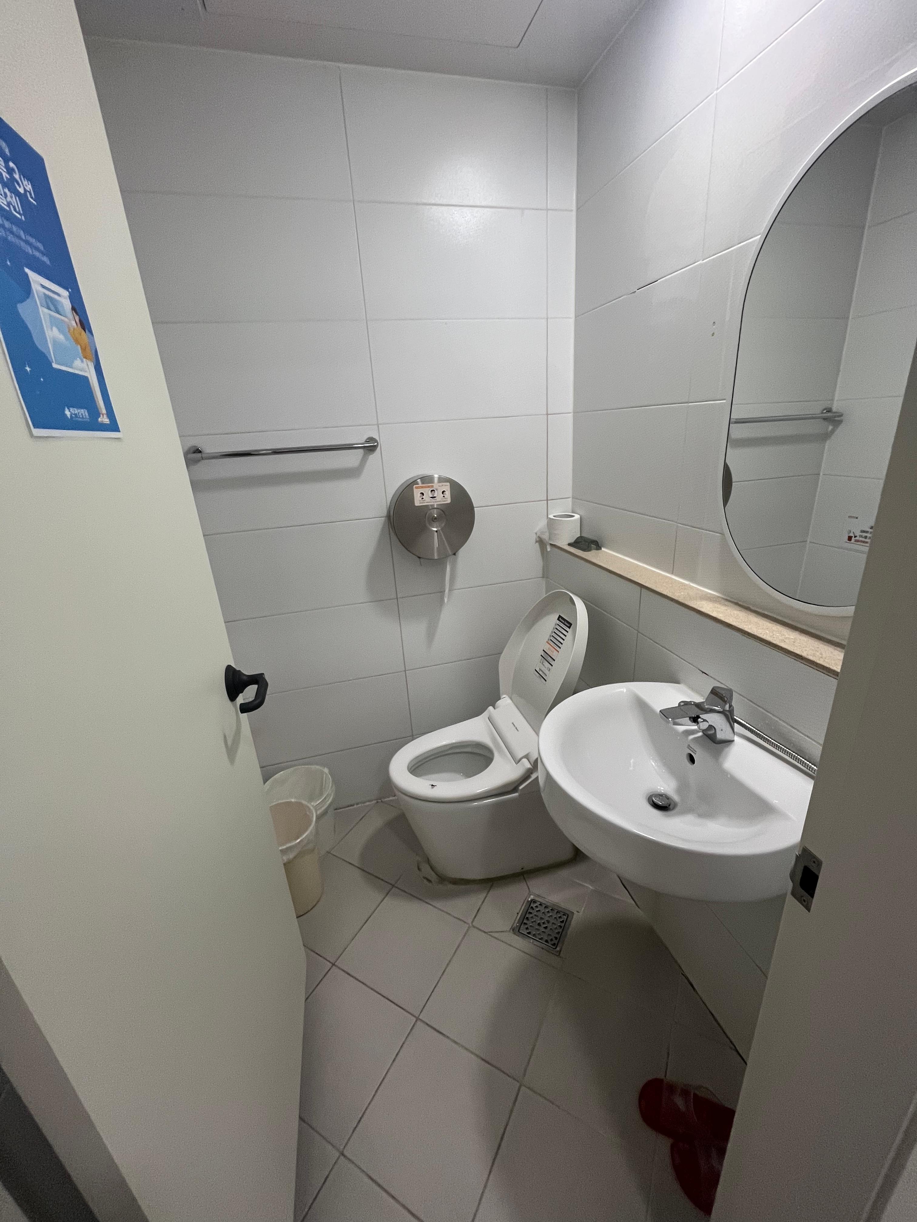 3인실은 화장실이 좁은 편이라서 샤워를 하거나 머리를 감기에는 힘들어서