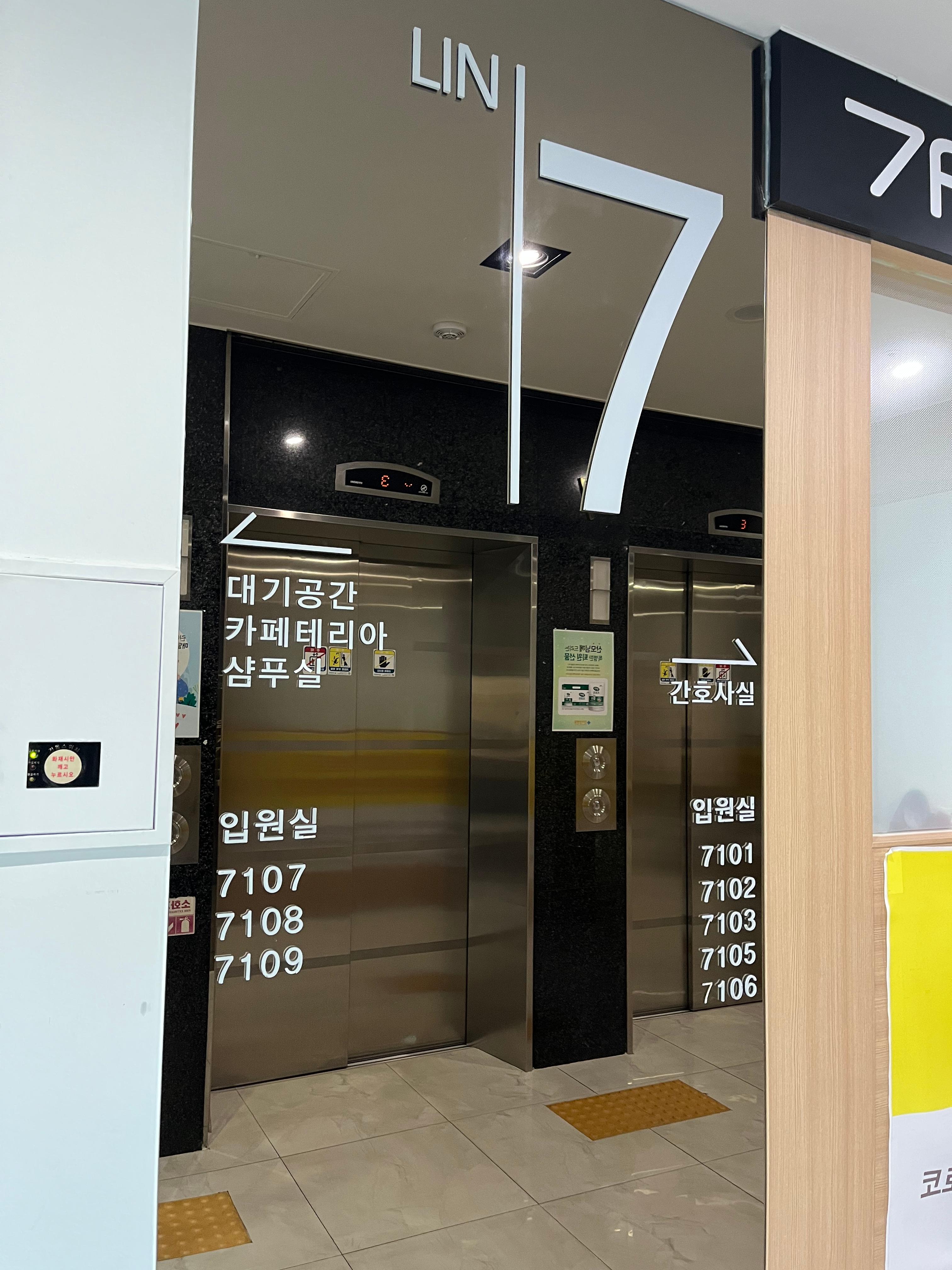 저는 3인실에 입원해 있는 동안은 샤워는 하지 않고 머리는 7층 샴푸실에 가서 감았어요.