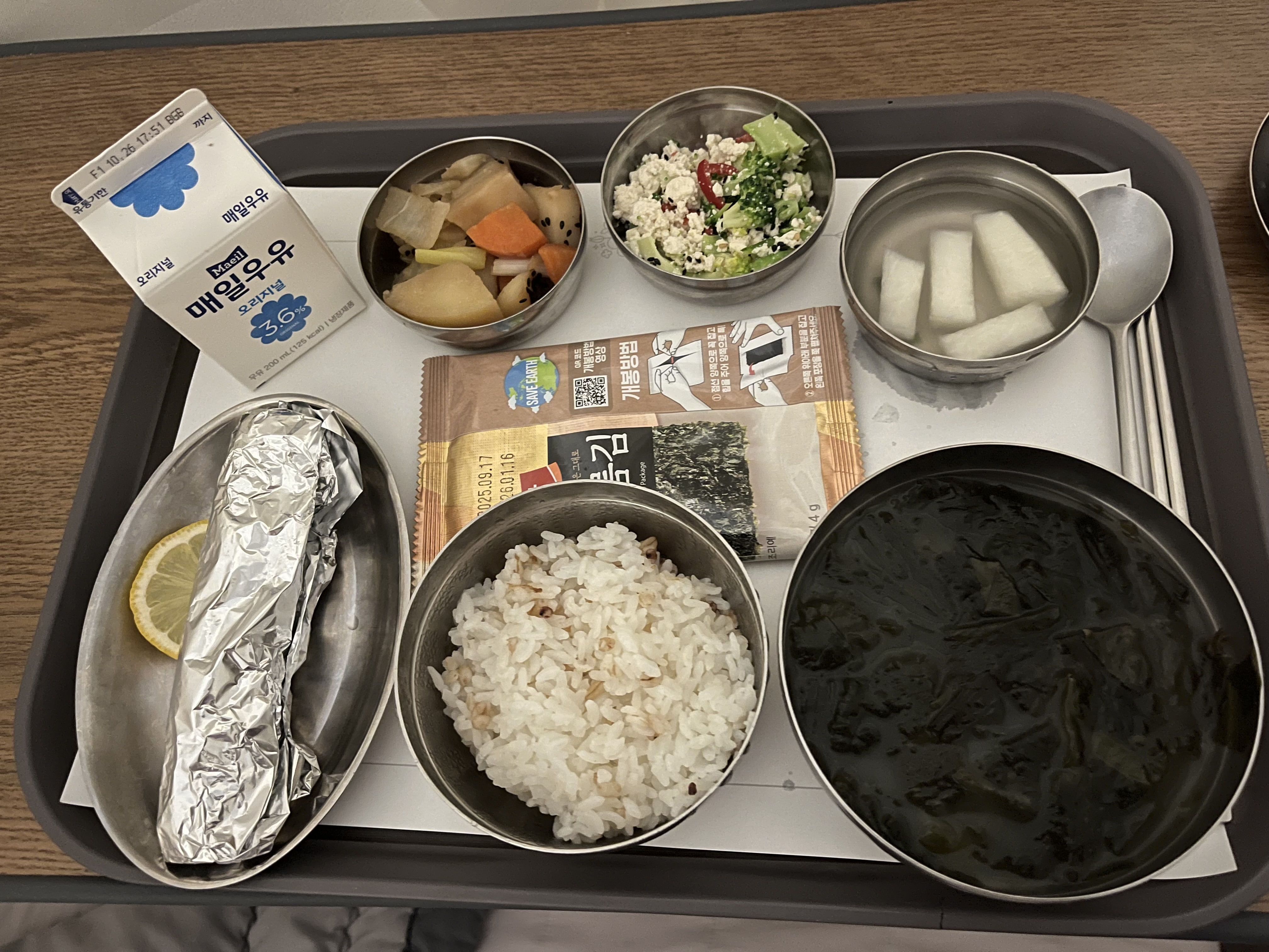 제왕절개 6일차 마지막 아침 사진이에요. 제 입맛에는 맛있었던 식사였는데 마지막이라 아쉬웠어요.ㅜㅜㅜ