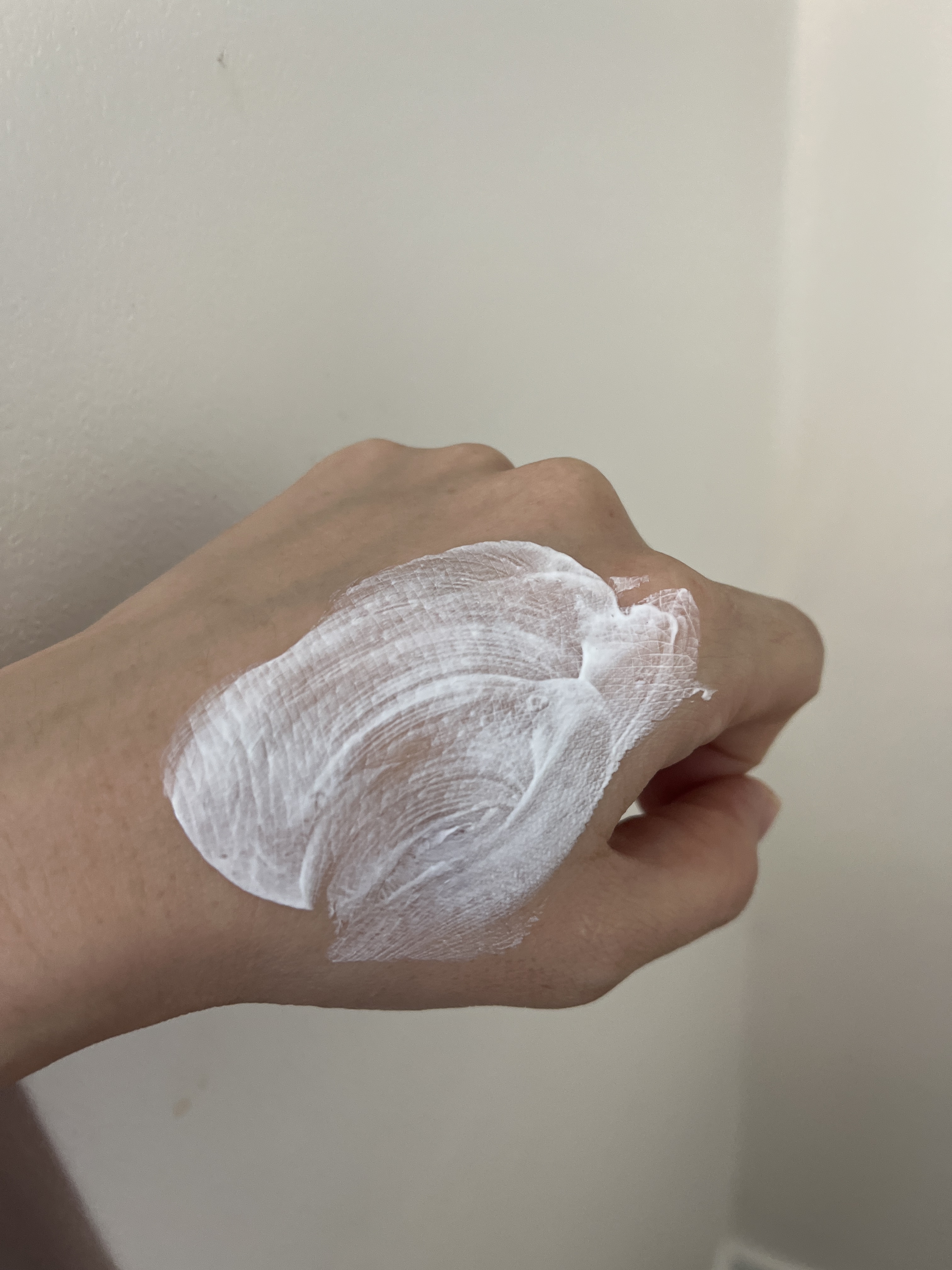 바르면 하얗게 되는데 발림성이 부드러워서 좋았어요. 예전에 첫째 하삐 때 썼던 무스텔라 내피크림, 수도 크림과 비슷한 색이지만 두 제품은 발림성이 뻑뻑해서 펴바르기 쉽지 않았거든요.