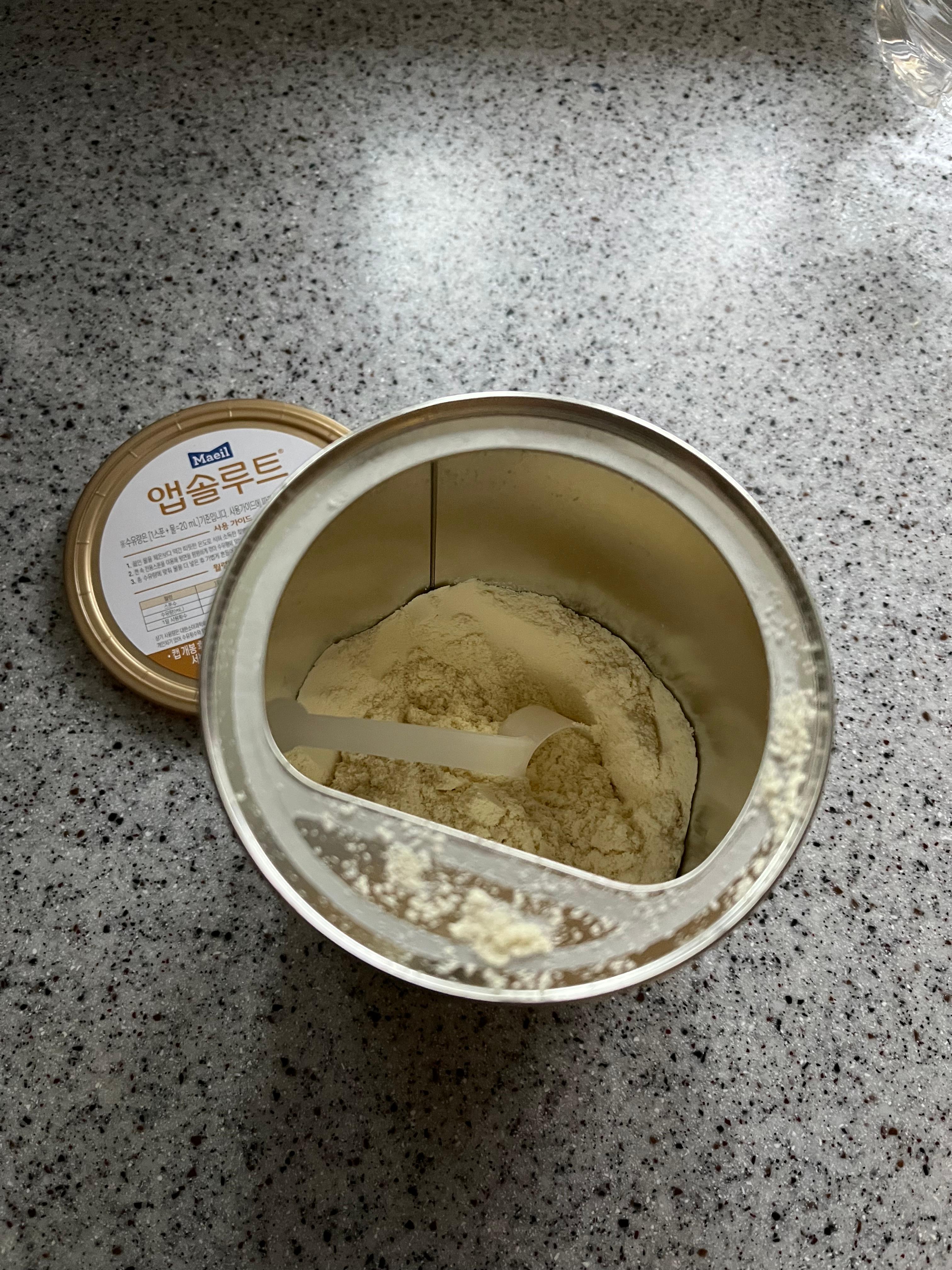 우리 뽀또는 조리원에서 "앱솔루트 산양 1단계"를 먹여서 집에 와서도 동일한 브랜드의 분유를 먹이게 되었어요.