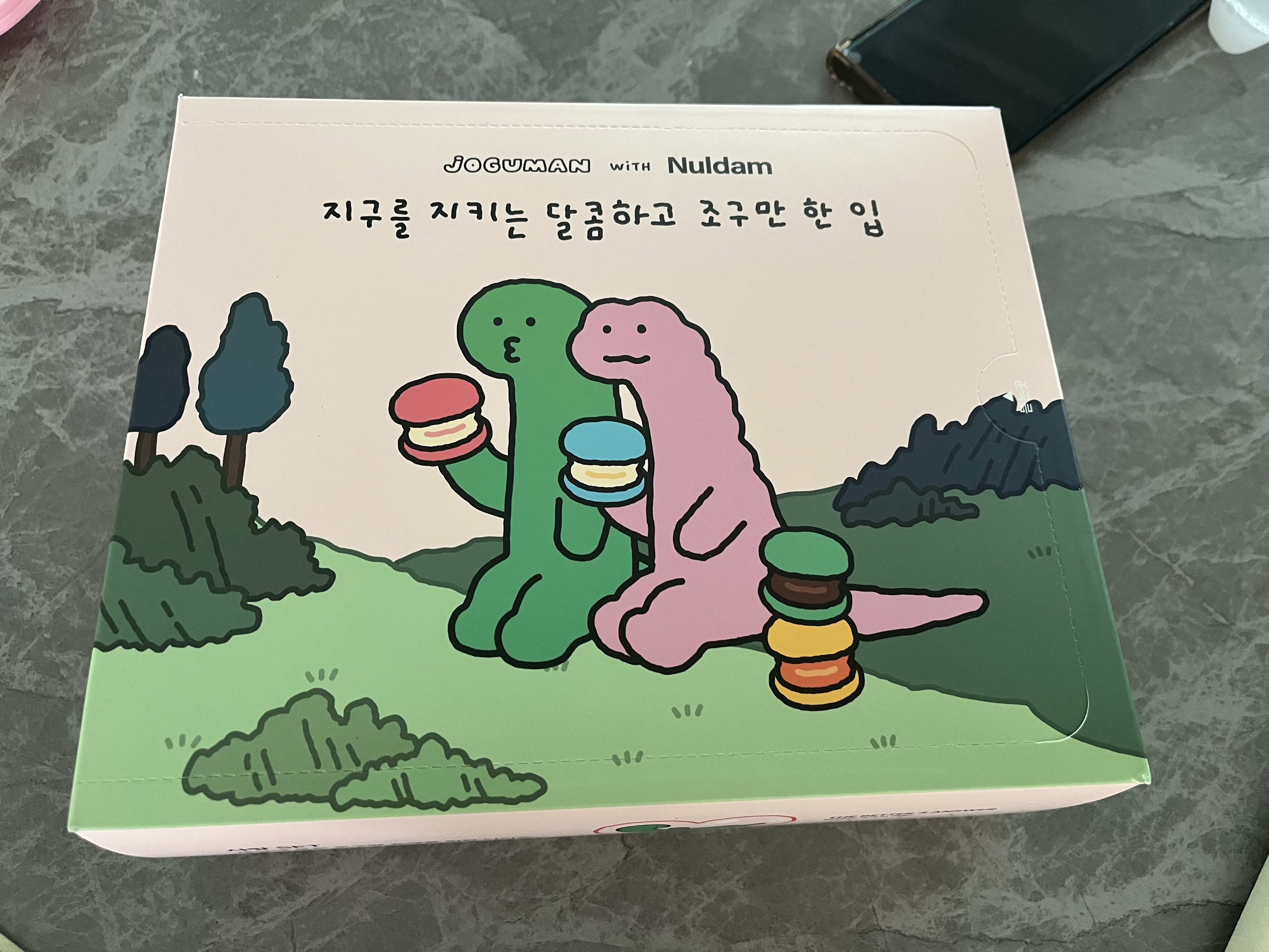 - "조구만X널담 뚱카롱 8구 포장박스"예요. 포장 박스가 너무 귀여워서 소장각이더라고요^^