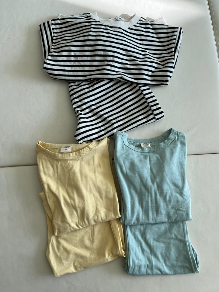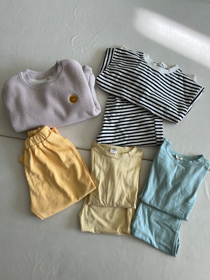 무난하게 입힐 수 있는 색에 실내복, 바지, 상하복, 맨투맨 등 다양하게 왔더라고요.><