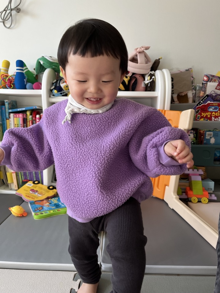 조카가 입었을 때 약간 크지만 소매에 시보리가 있어서 지금 입어도 좋더라고요~