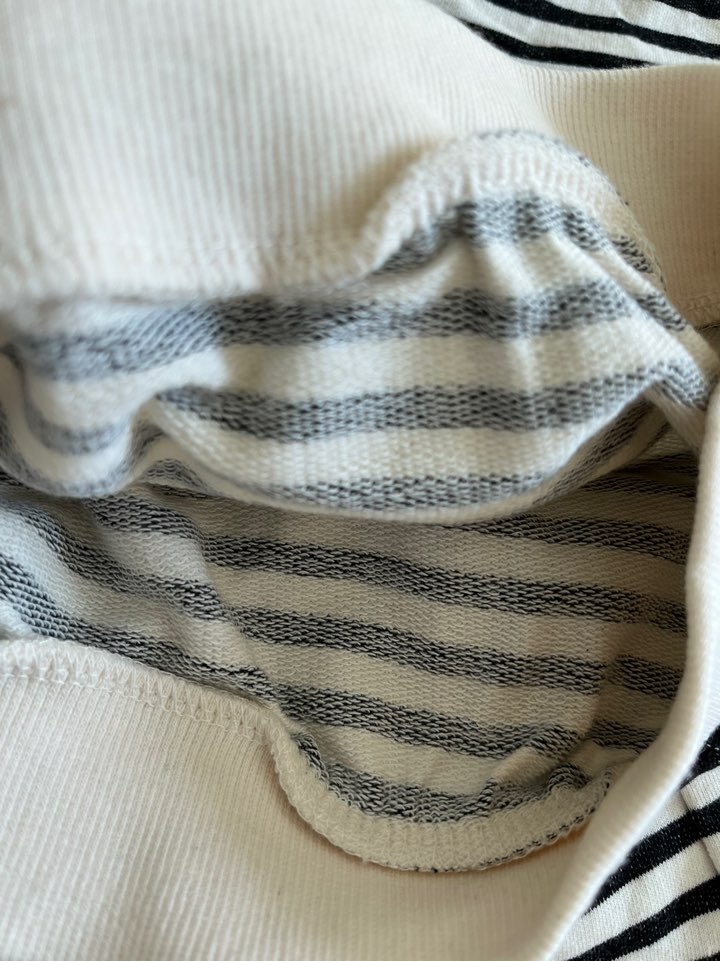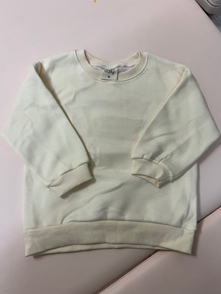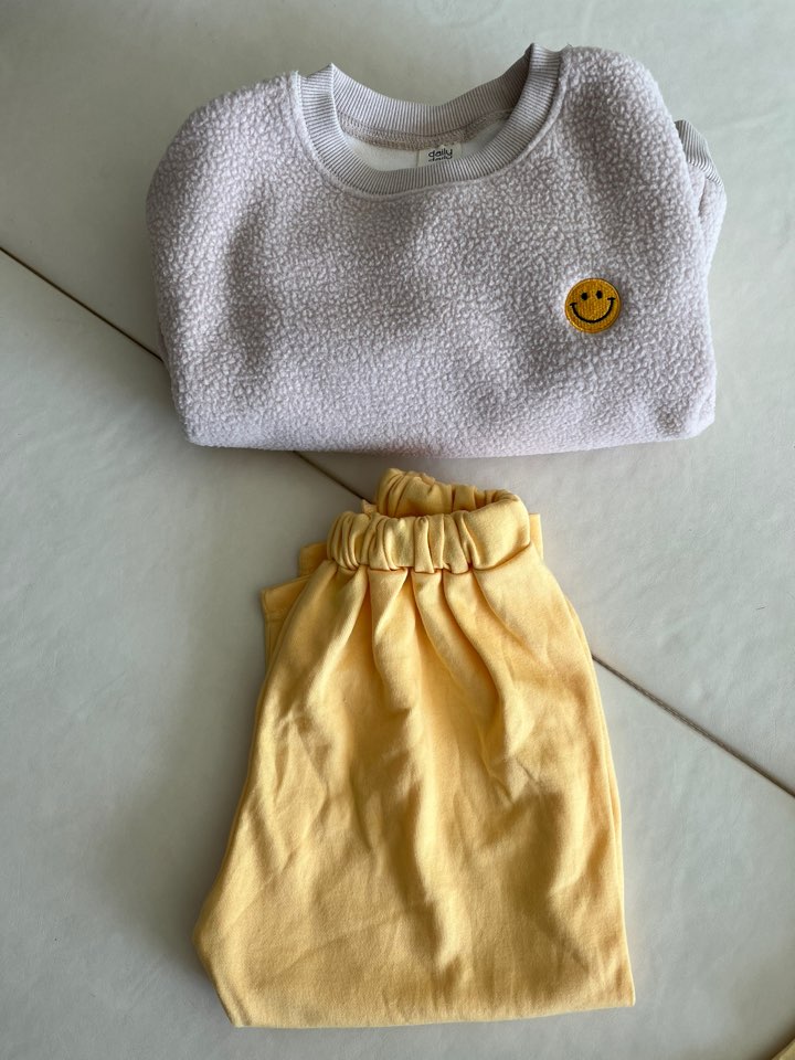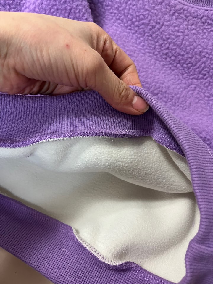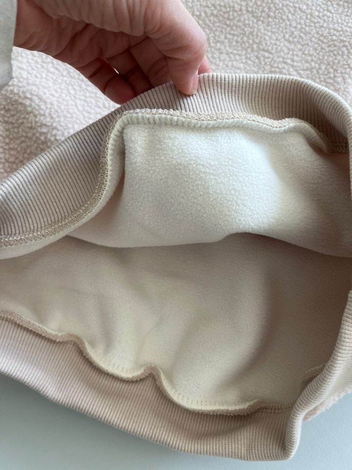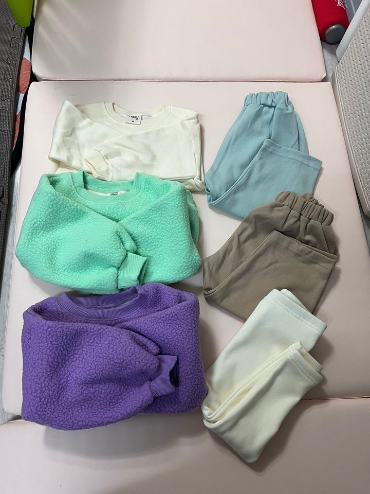 상하복은 단 한 벌도 없었어요. 색만 다른 똑같은 디자인의 뽀글이 기모 맨투맨 2벌, 얇은 기모 맨투맨 1벌, 색만 다른 똑같은 디자인의 봄/가을 바지 2벌, 기모 레깅스 1벌 총 6벌이 왔어요.