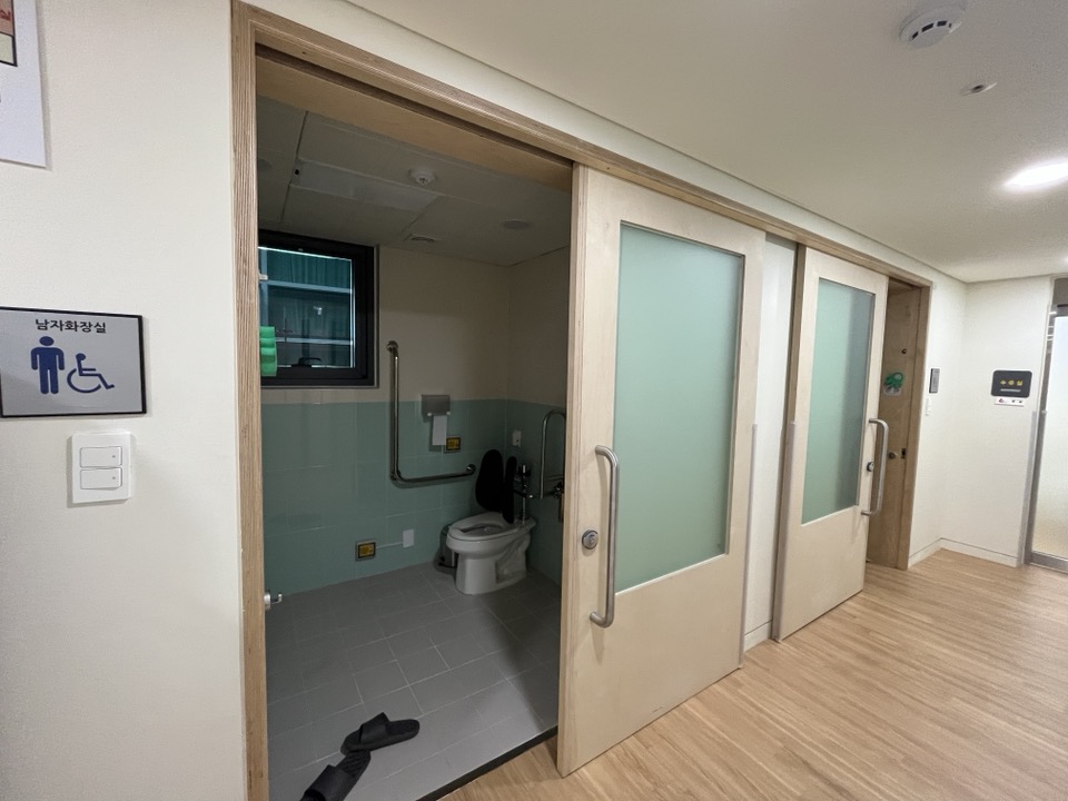 화장실 안에는 아이들을 배려해 아이들 슬리퍼 및 키 작은 아이들도 손 씻을 수 있게 계단까지 준비되어 있어요.