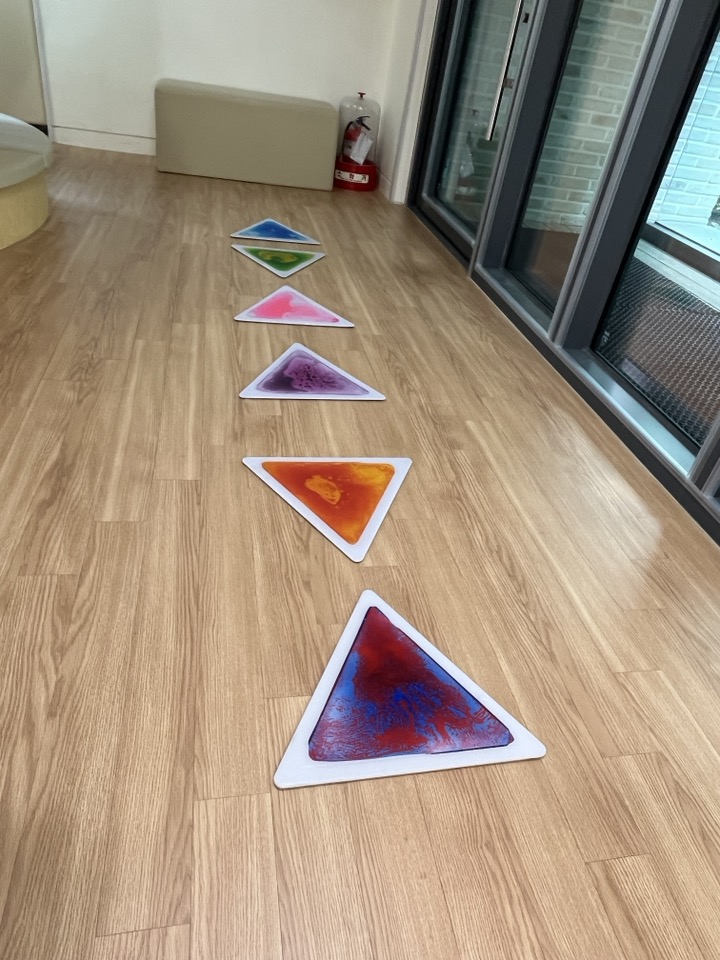 여기를 밟으면 물감들이 섞이면서 색깔의 변화를 눈을 보고 즐길 수 있어요.